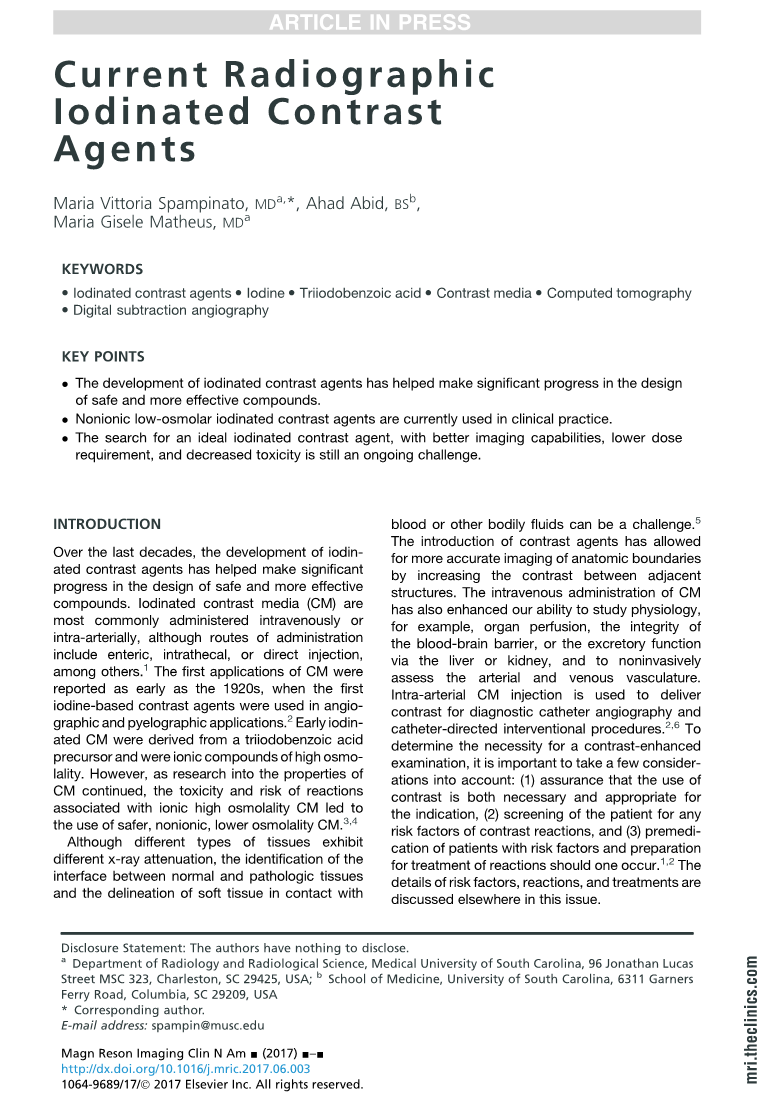 ·The development of iodinated contrast agents has helped make significant progress in the design of safe and more effective compounds.