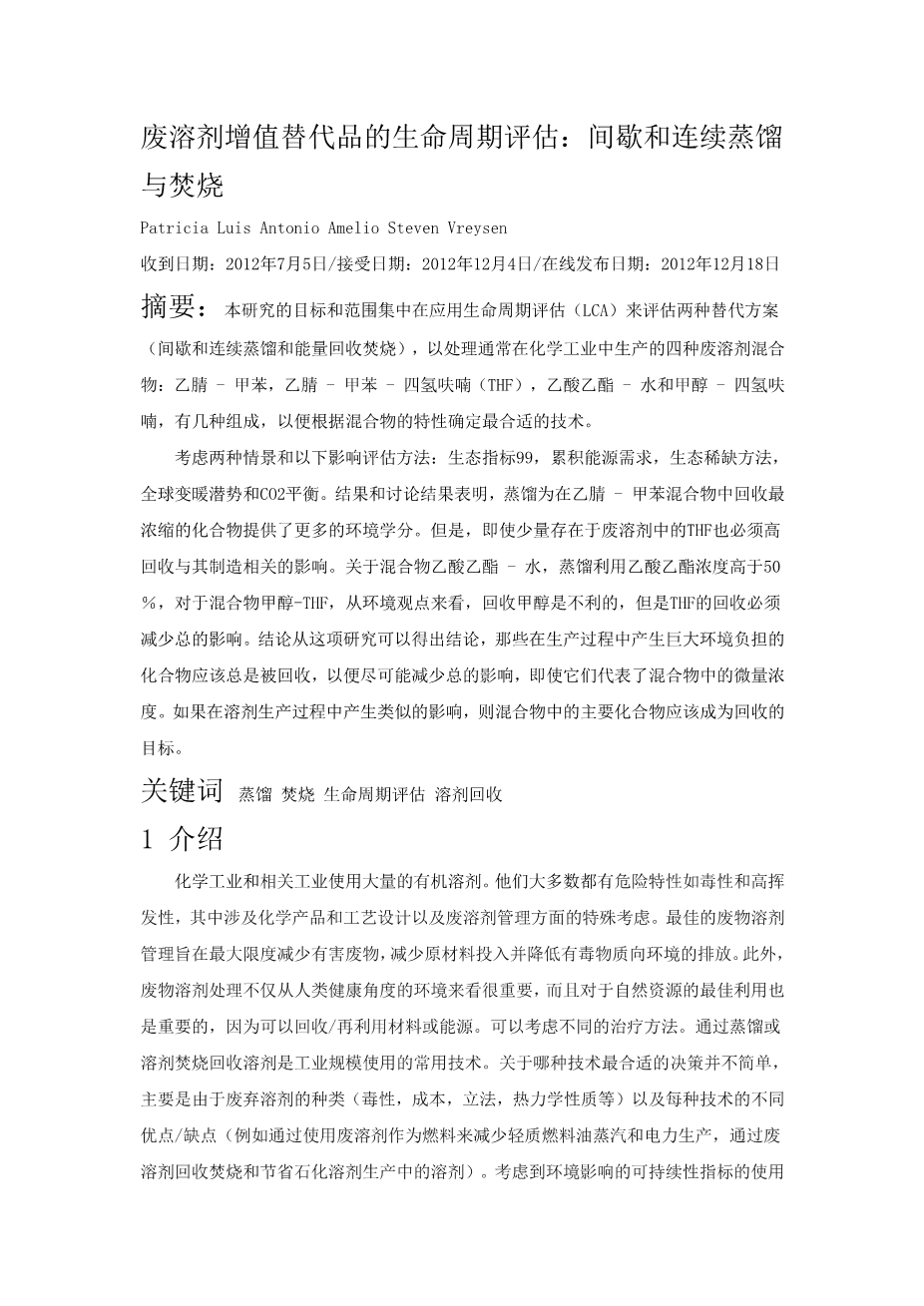 - 压力选择在变压精馏中的重要性外文翻译资料