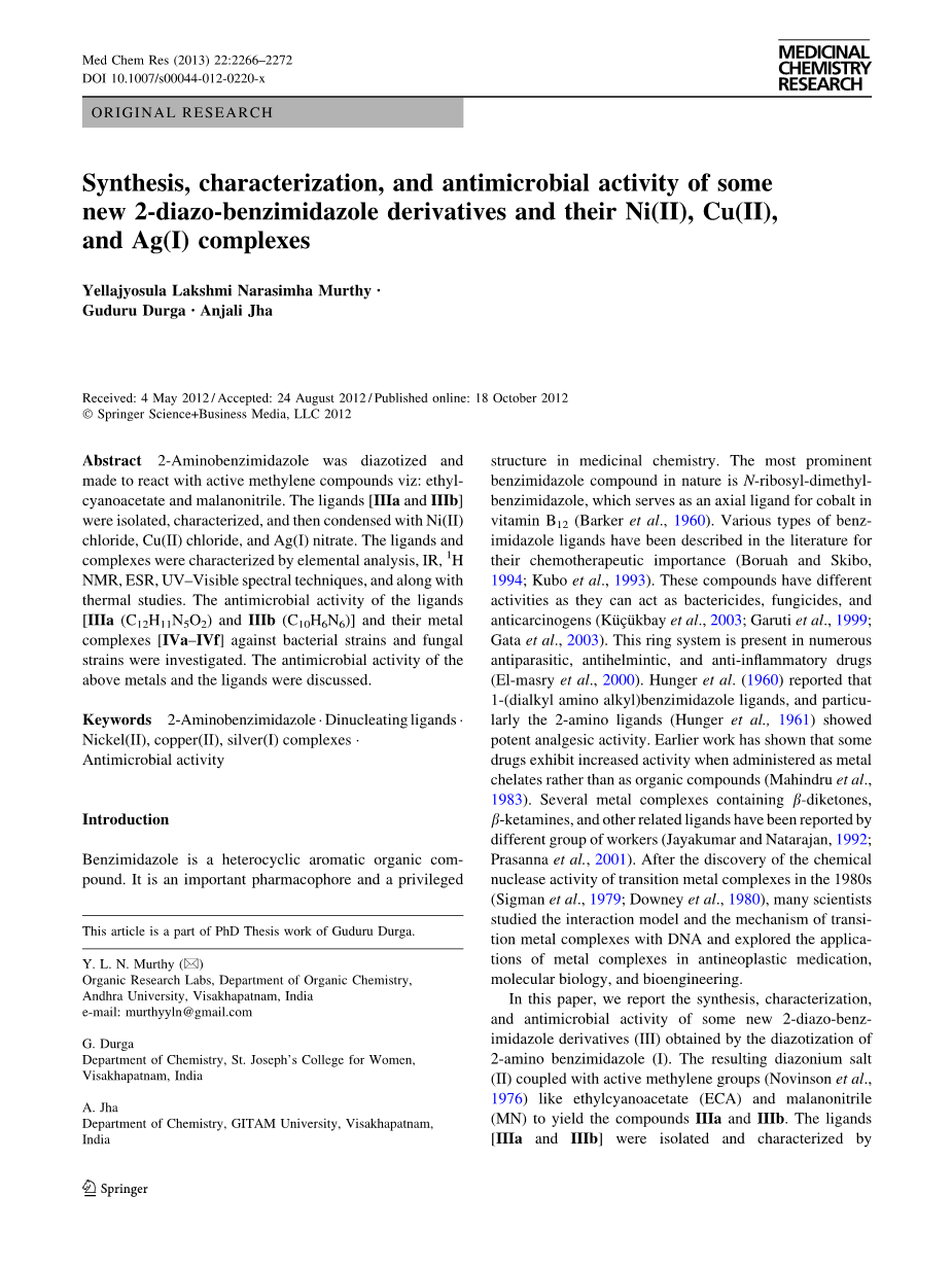 一些新的2-重氮苯并咪唑衍生物及其Ni(II)、Cu(II)和Ag(I)配合物的合成、表征和抗菌活性