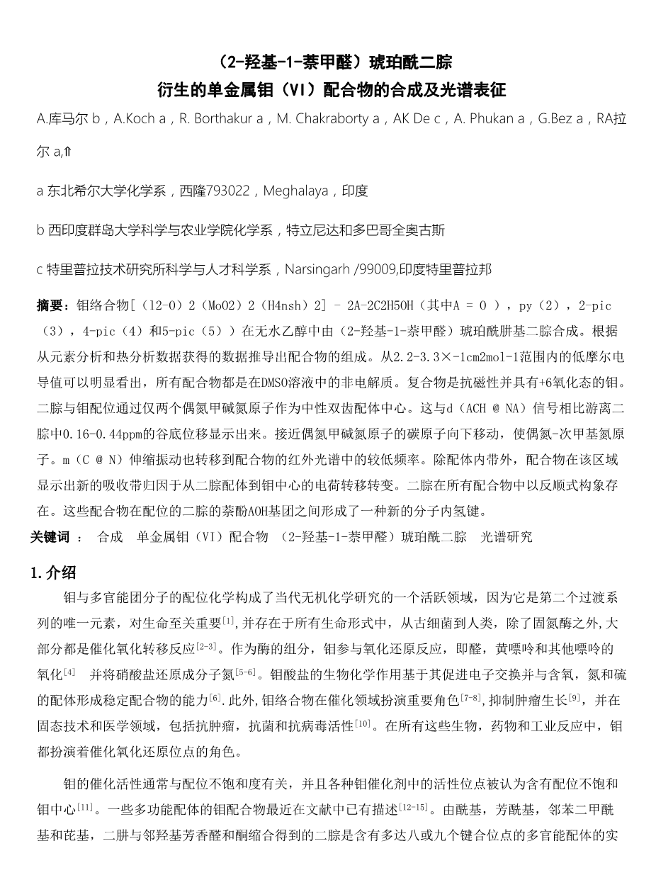 - 生物催化选择性合成功能化喹唑啉酮衍生物外文翻译资料