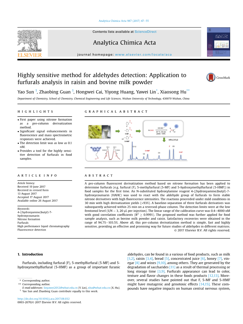 Yao Sun 1, Zhaobing Guan 1, Hongwei Cai, Yiyong Huang, Yawei Lin*, Xiaosong Hu**