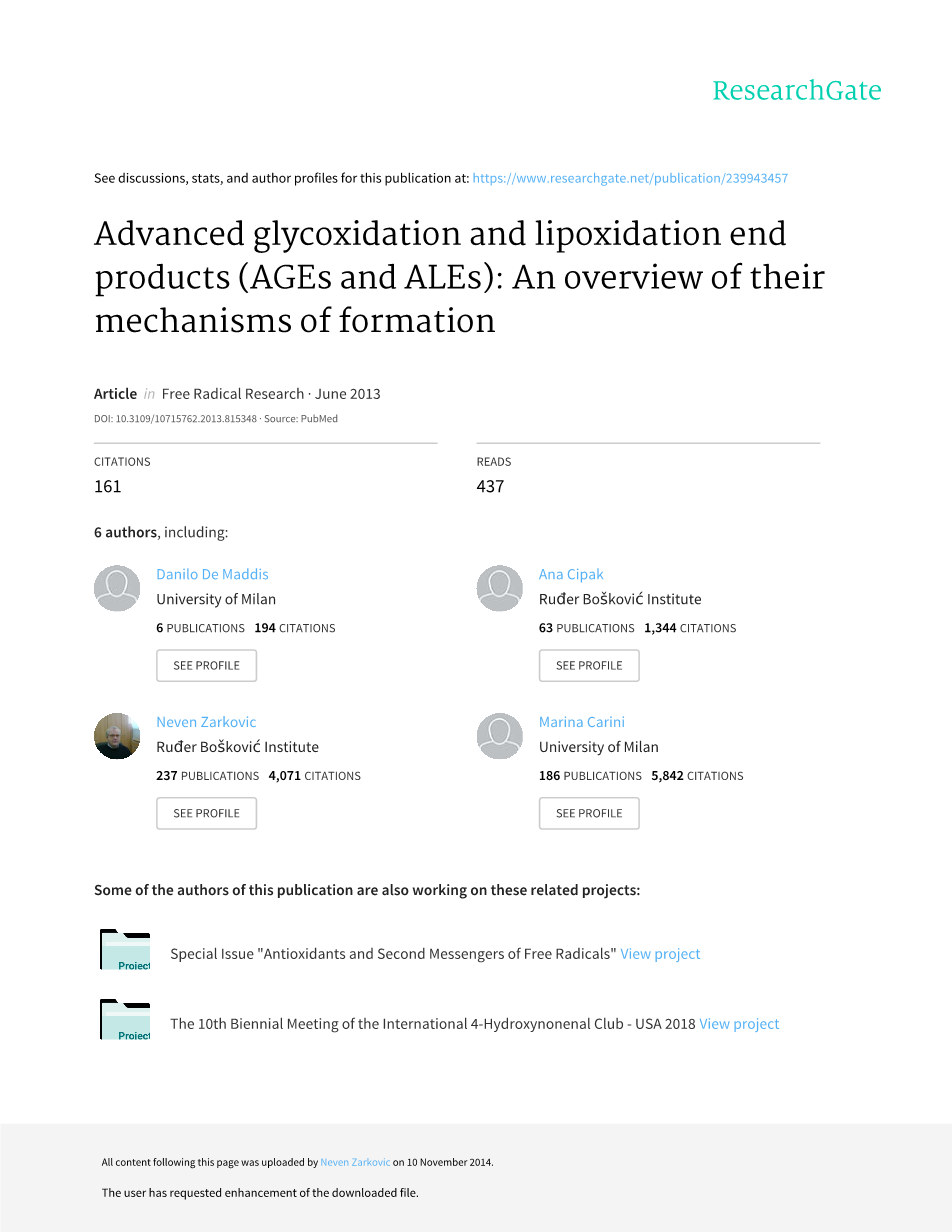 G. Vistoli, D. De Maddis, A. Cipak, N. Zarkovic, M. Carini amp; G. Aldini