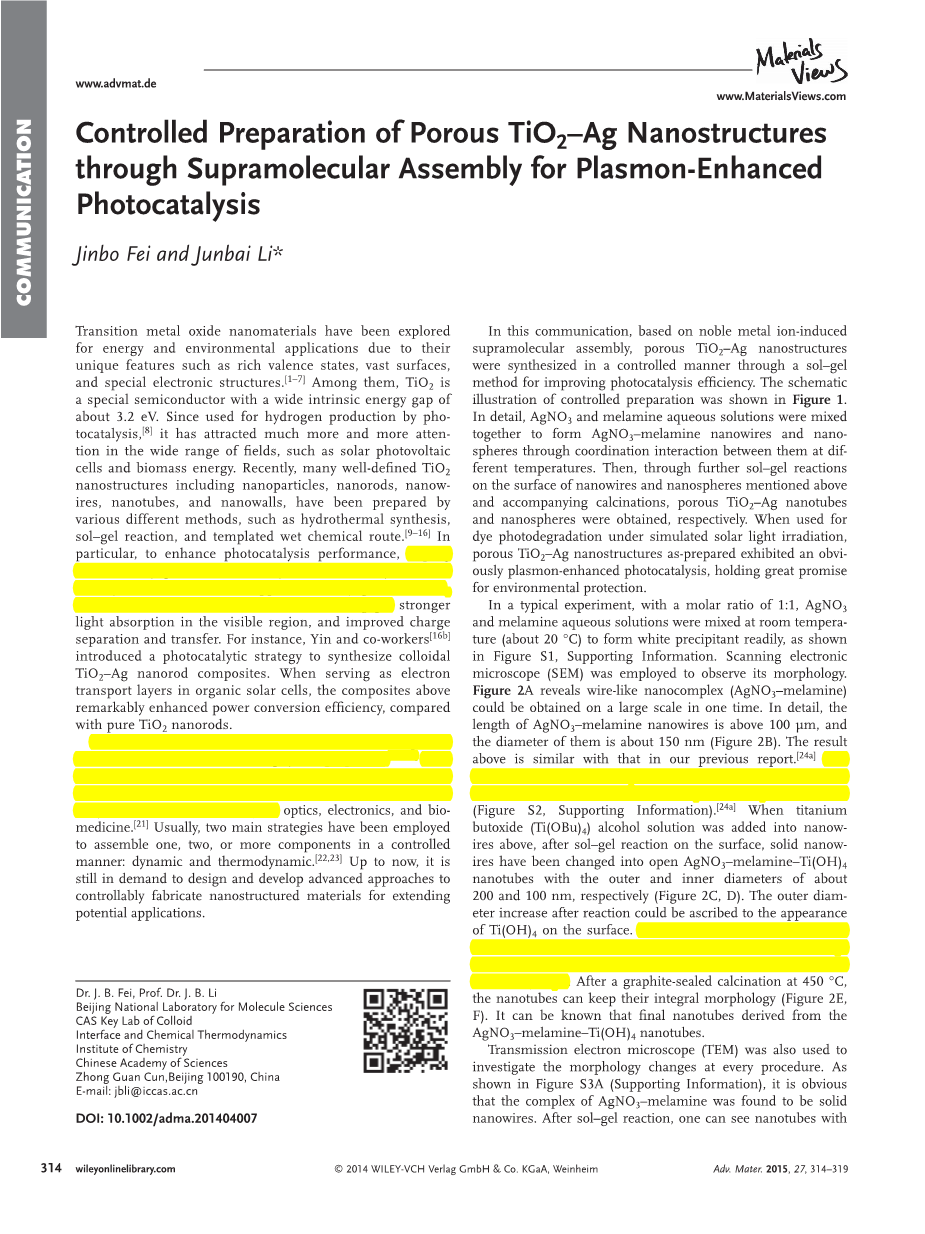 用等离子体增强的超分子组装光催化制备可控多孔TiO2-Ag纳米结构外文翻译资料