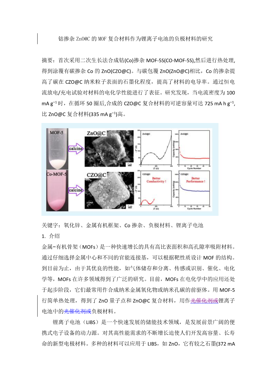 - 钼酸钙/碳三维复合材料可控设计合成的研究外文翻译资料