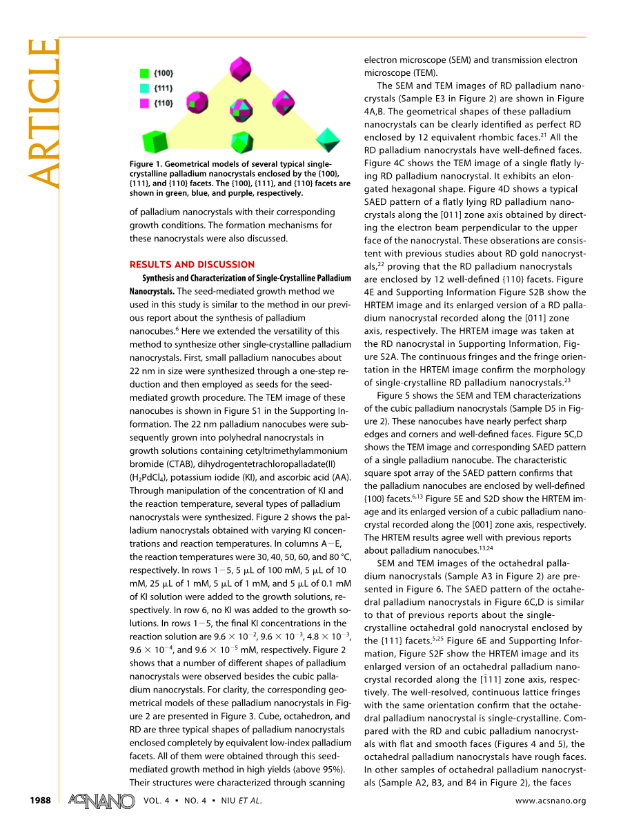 图3.图2中呈现的钯纳米晶体的几何模型。{100},{111}和