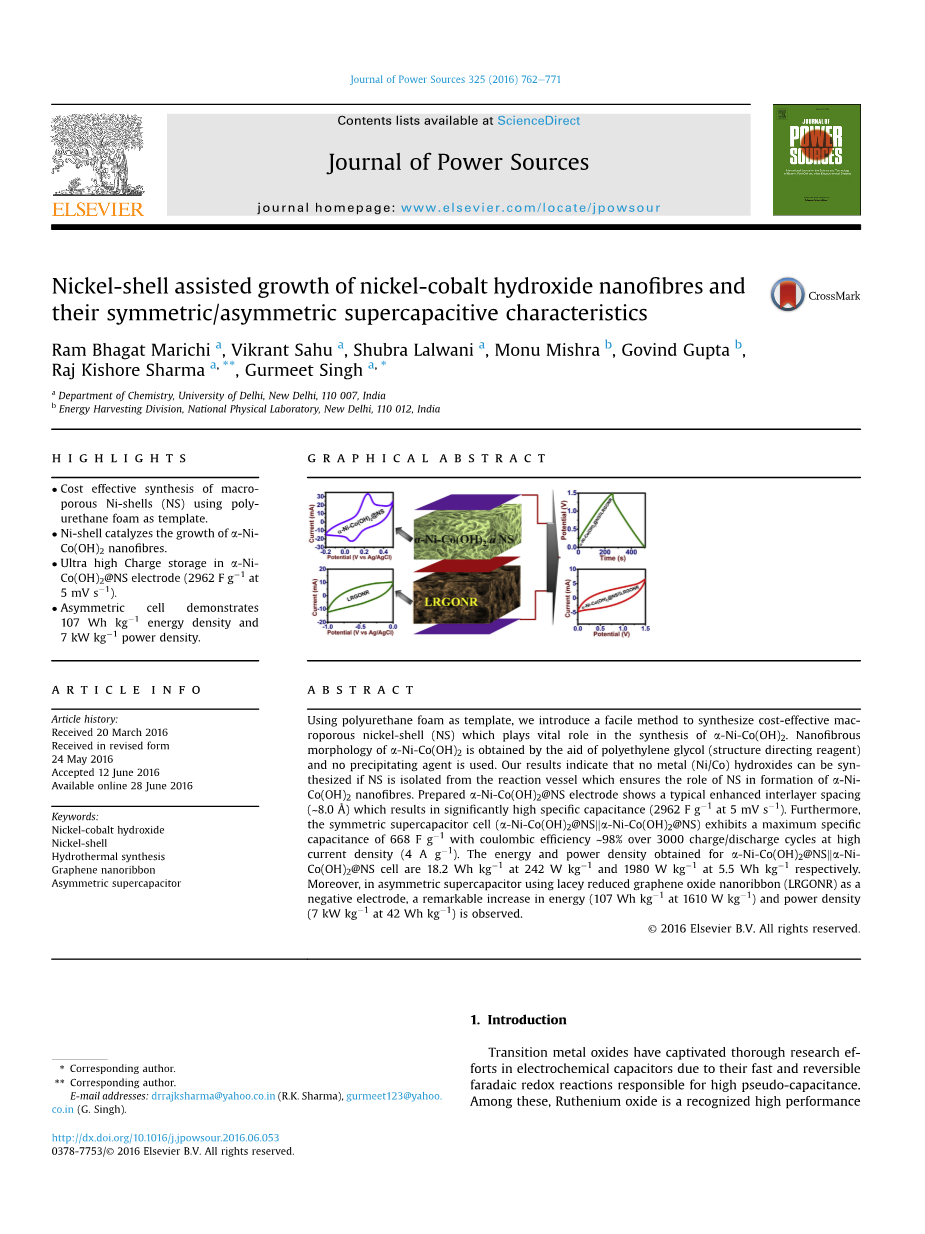 Key words Nickel-cobalt hydroxide Nickel-shellHydrothermal synthesis Graphene nanoribbonAsymmetric supercapacitor