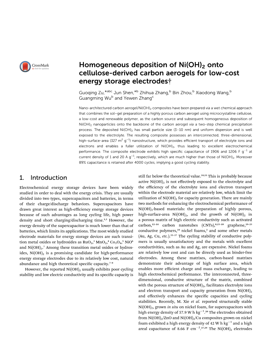 将Ni(OH)2均匀沉积至纤维素衍生的碳气凝胶表面,应用于低成本储能电极