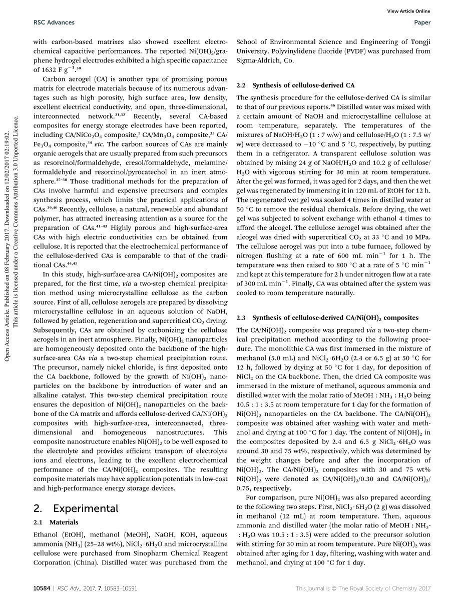 2.3纤维素衍生的CA / Ni(OH)2复合材料的合成