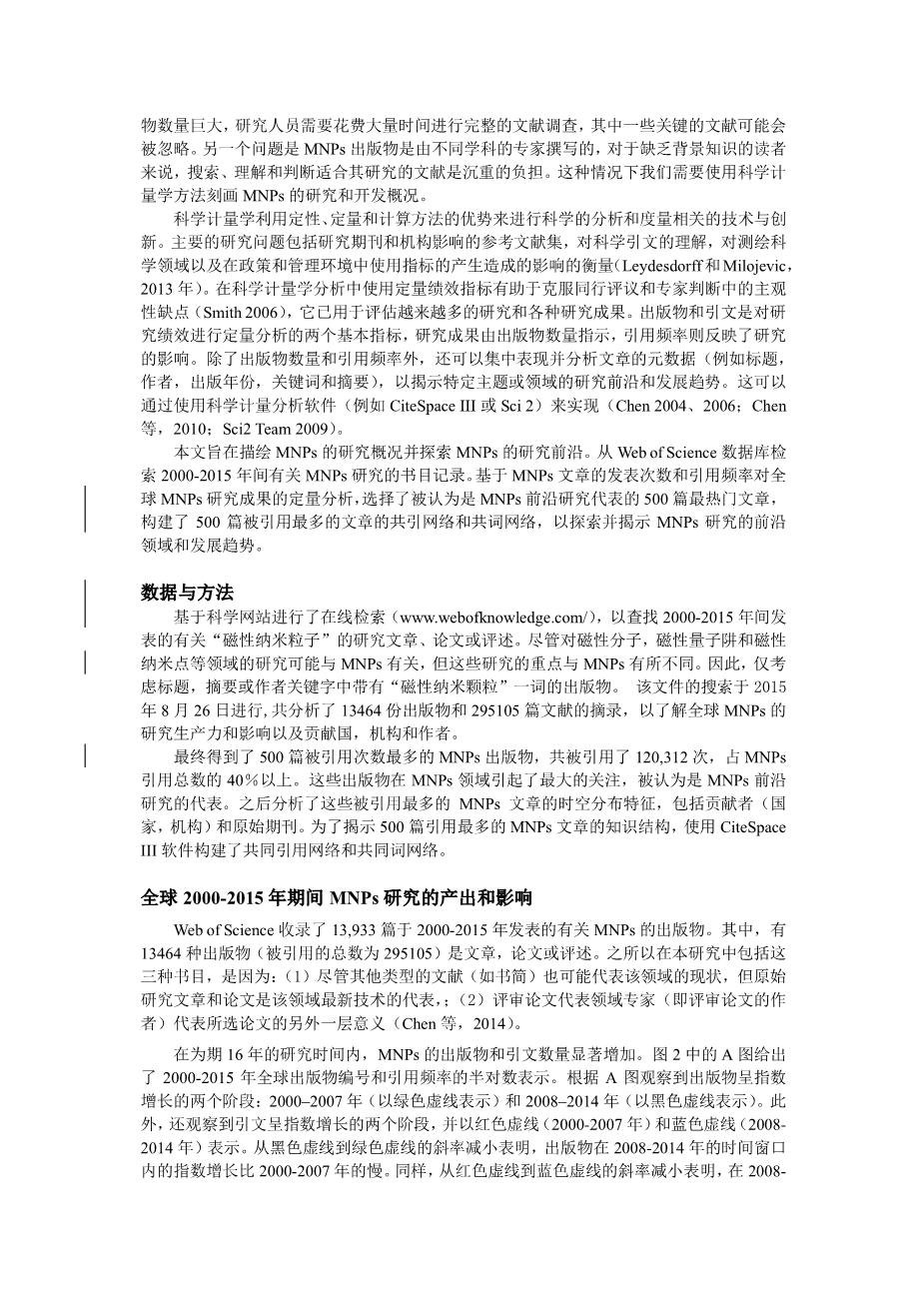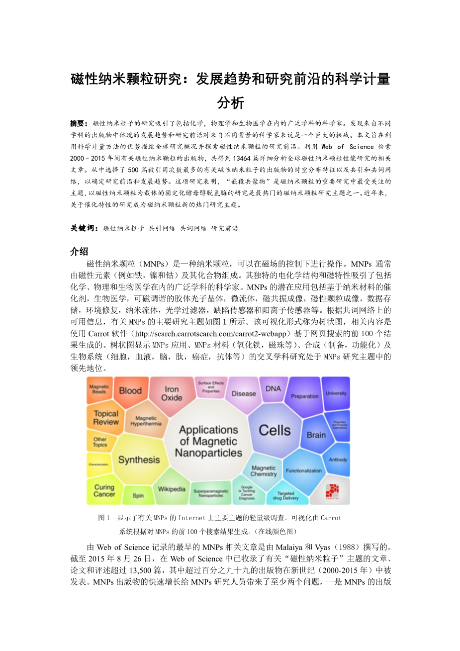 磁性纳米颗粒研究:发展趋势和研究前沿的科学计量 分析外文翻译资料