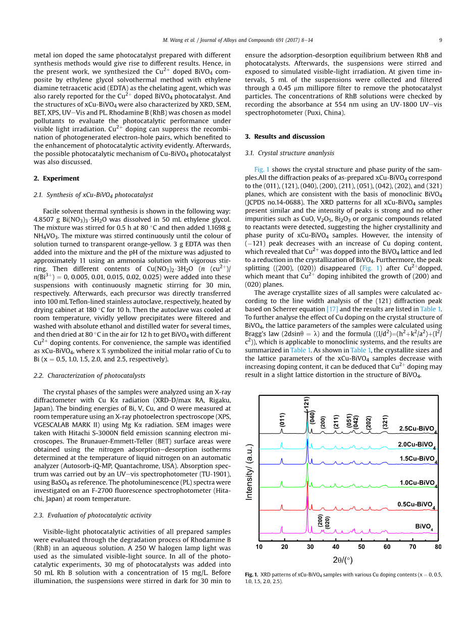 Cu掺杂剂对乙二醇溶剂热法制备的茧状Cu-BiVO4 结构和光催化性能的影响