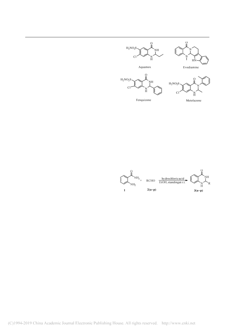 关键词:2, 3- 二氢- 4(1H)- 喹唑啉酮;2- 氨基苯甲酰胺;芳香醛;盐酸