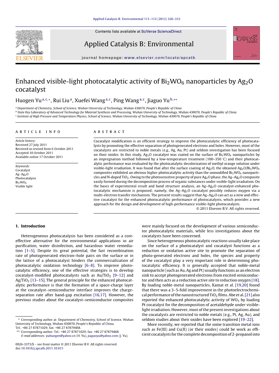 关键词:助催化剂;Ag-Ag2O;光催化;Bi2WO6 ;可见光