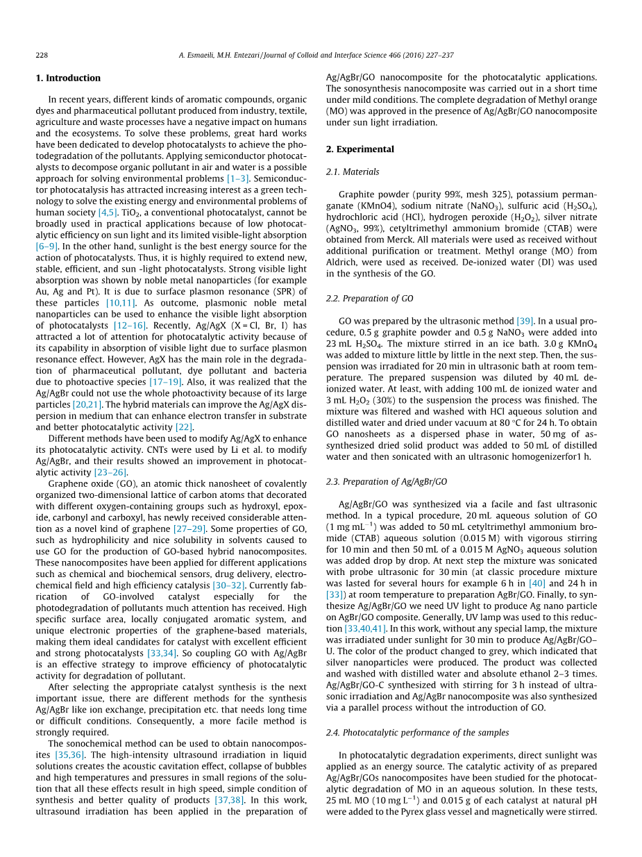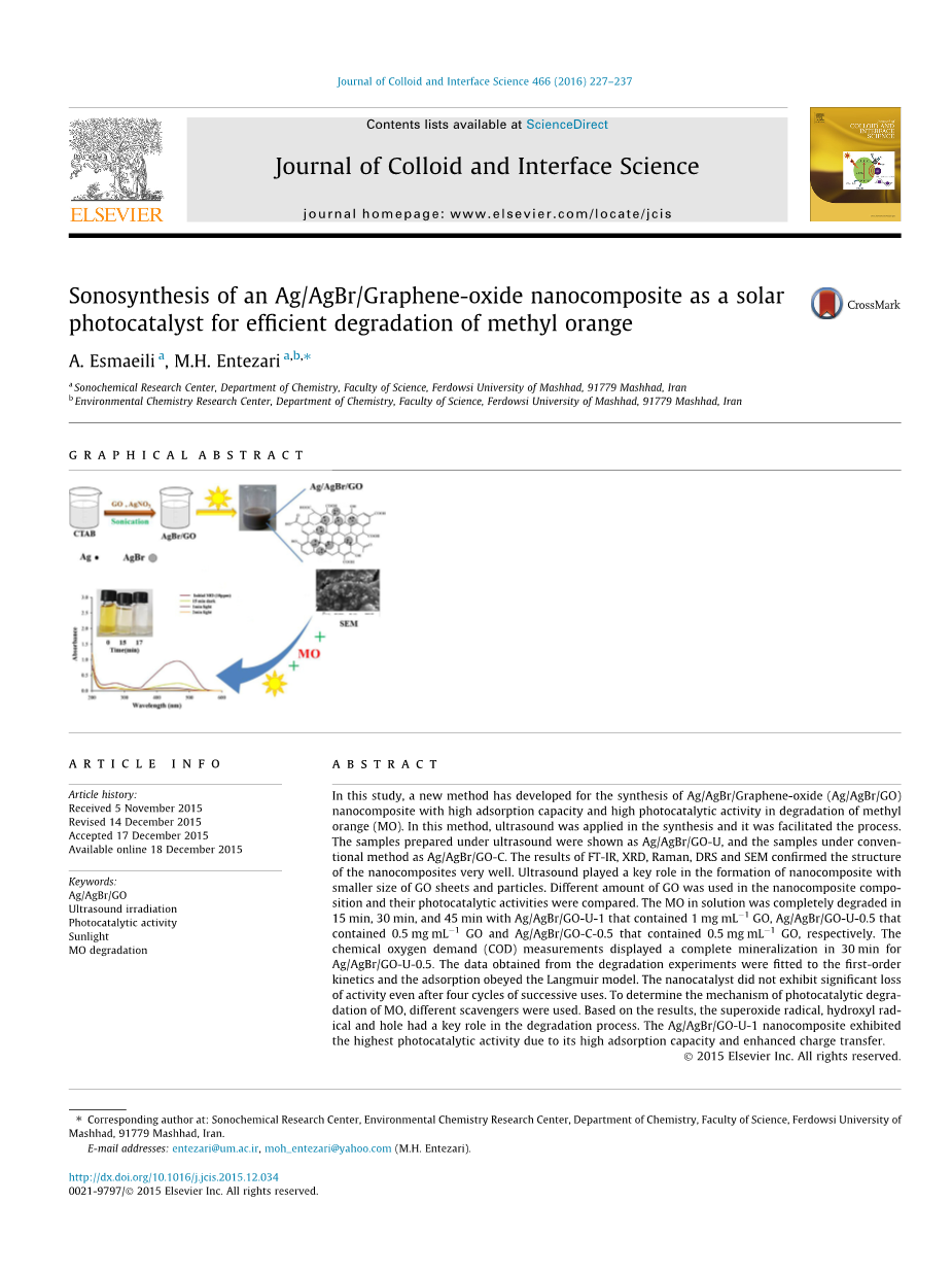 关键词:Ag/AgBr/GO 超声辐照 光催化活性 太阳光 降解甲基橙