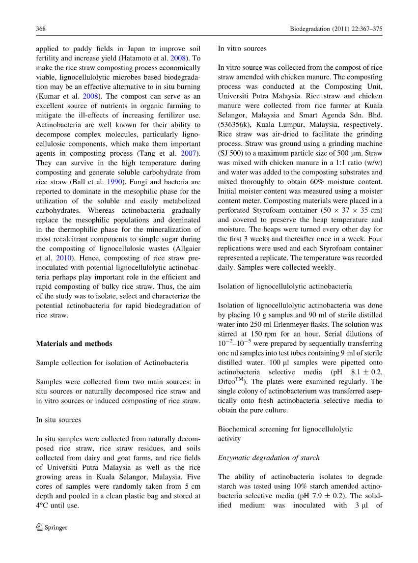 从两个主要来源收集样品:原位来源或天然分解的稻草和体外来源或诱导的稻草堆肥。