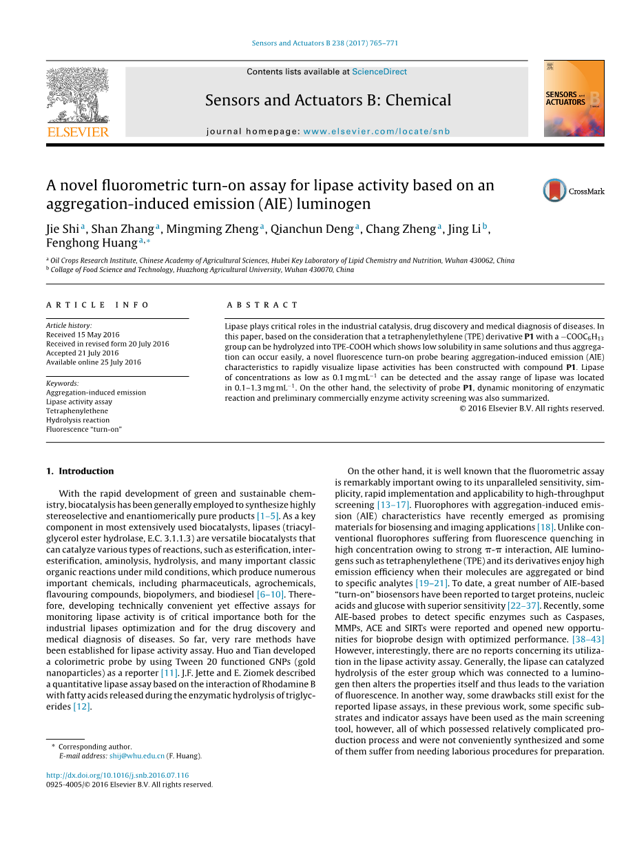 Jie Shi , Shan Zhang , Mingming Zheng , Qianchun Deng , Chang Zheng , Jing Li ,Fenghong Huang