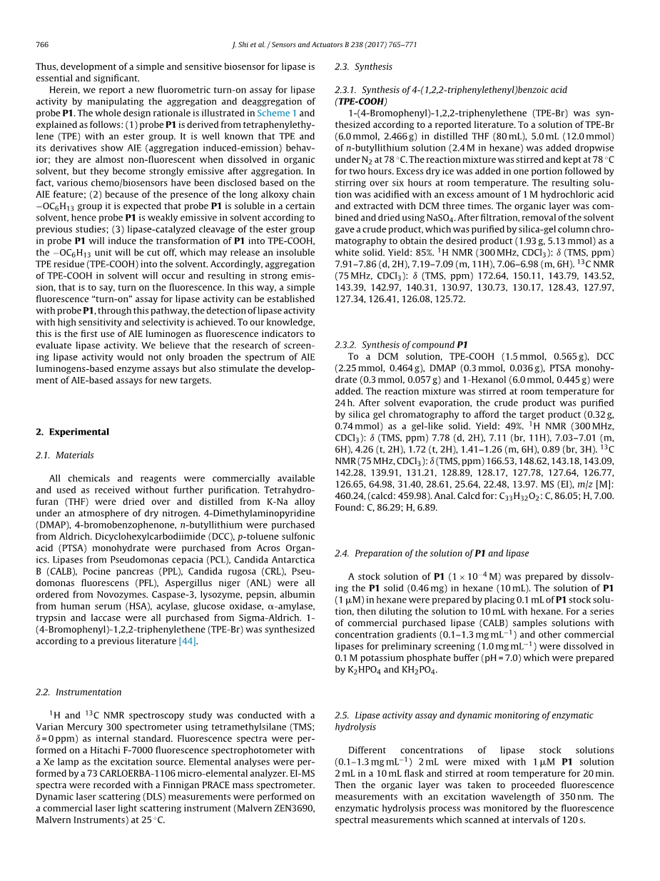 基于聚集诱导发光特性的新型荧光探针测定脂肪酶活性