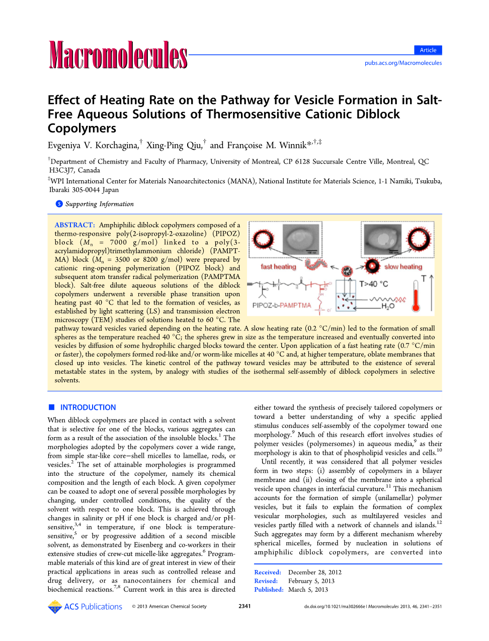 Evgeniya V. Korchagina,dagger; Xing-Ping Qiu,dagger; and Françoise M. Winnik*,dagger;,Dagger;