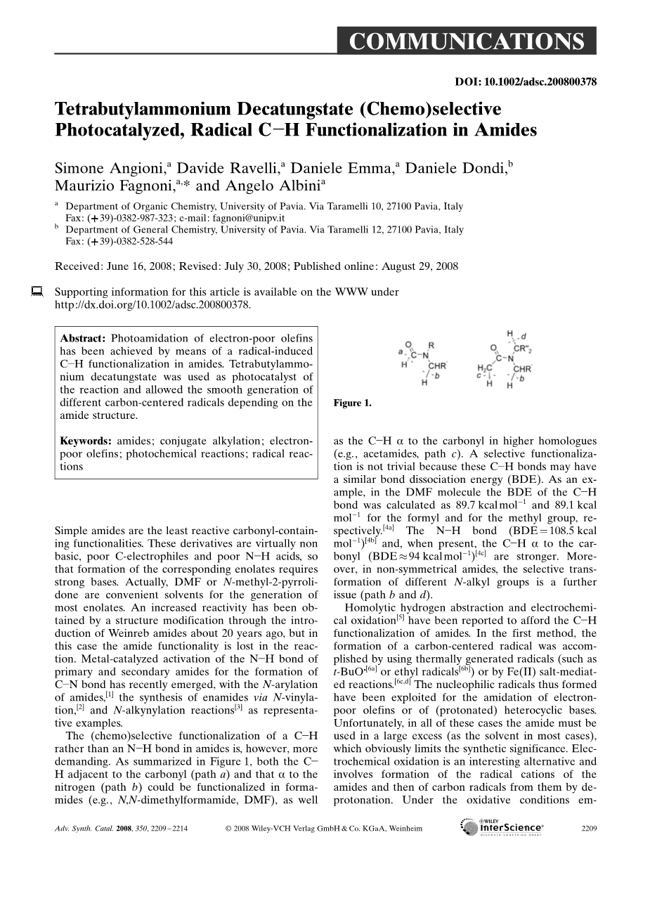 十钨酸四丁基铵在酰胺中的选择性光催化和自由基C-H官能化