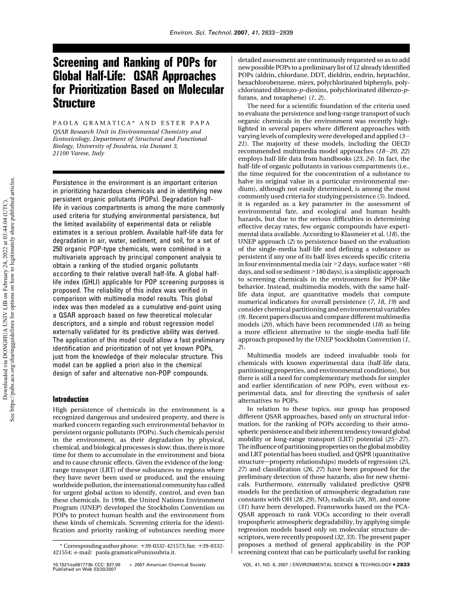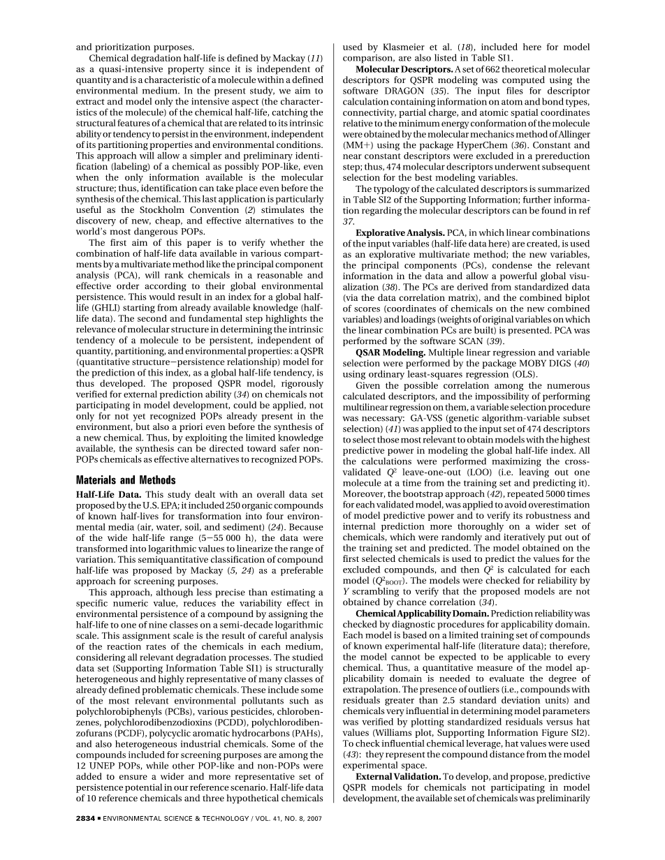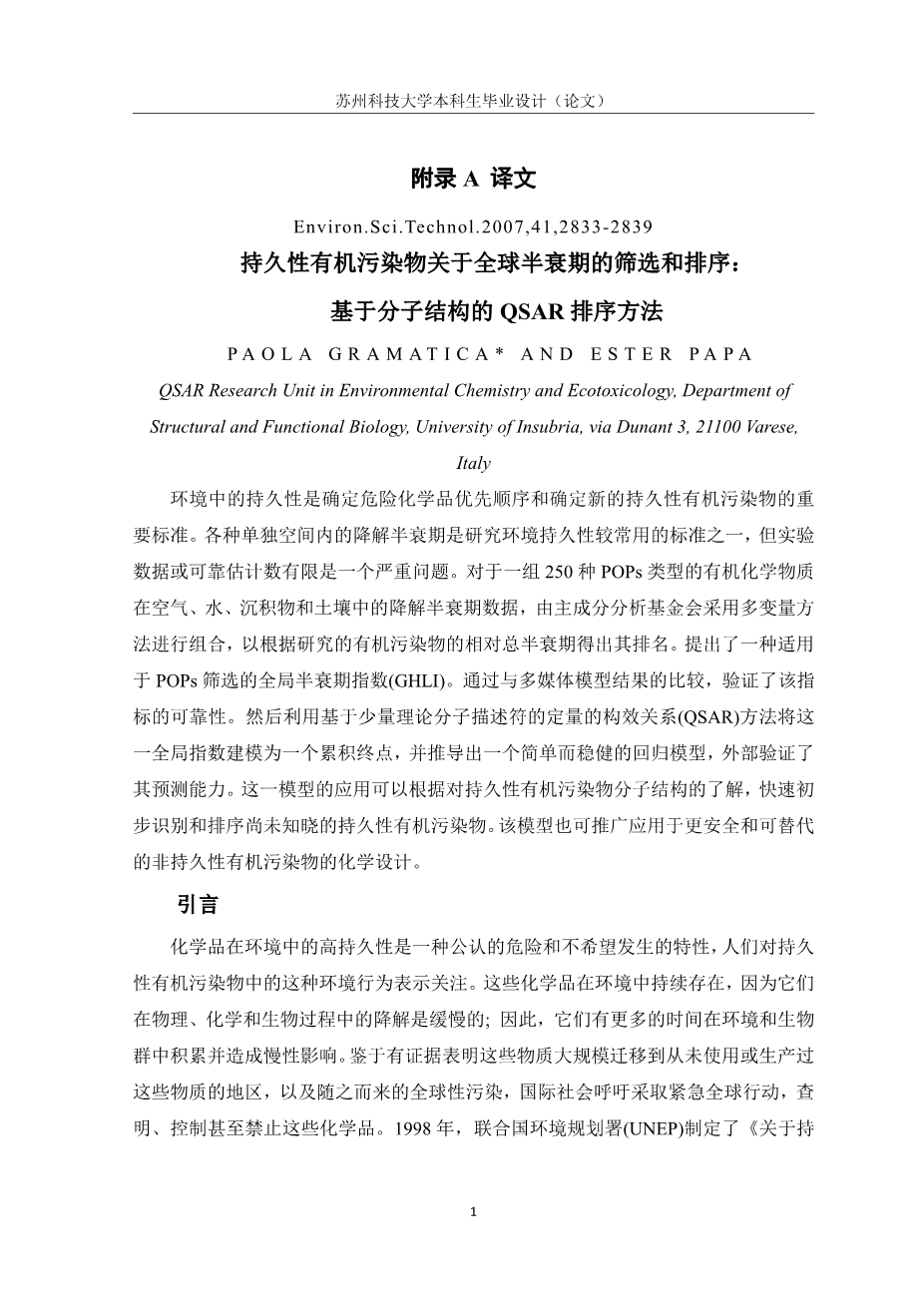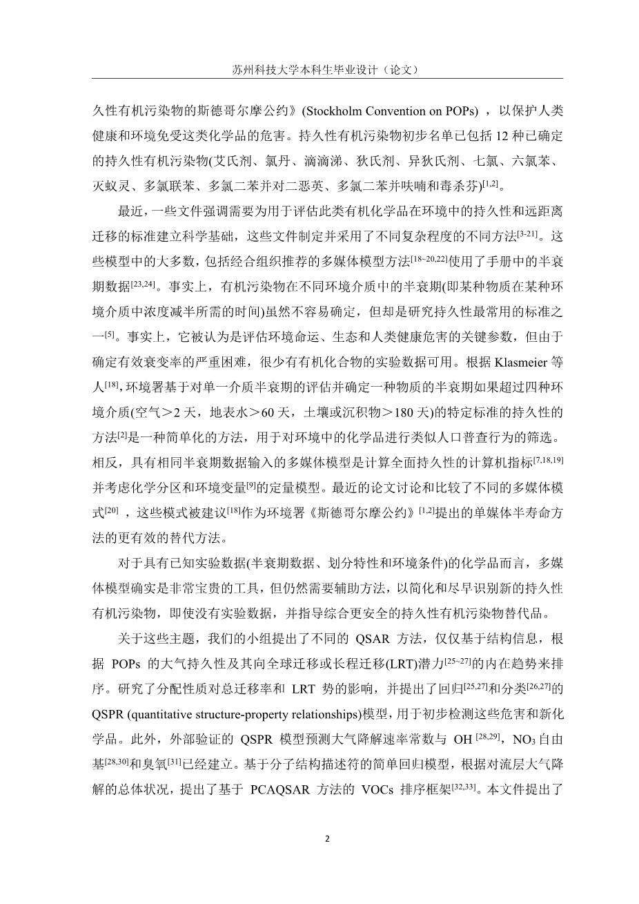 持久性有机污染物关于全球半衰期的筛选和排序:基于分子结构的QSAR排序方法外文翻译资料
