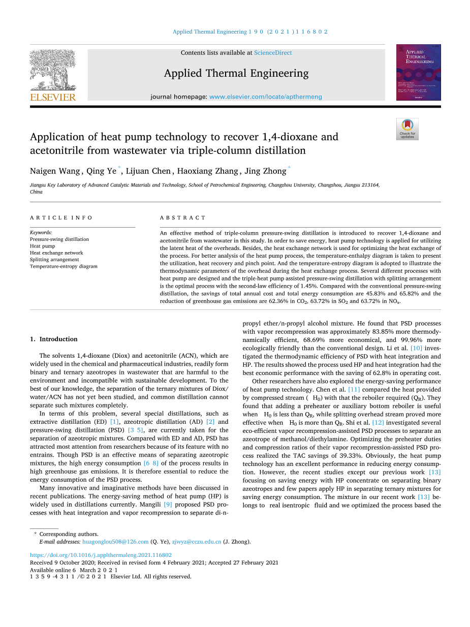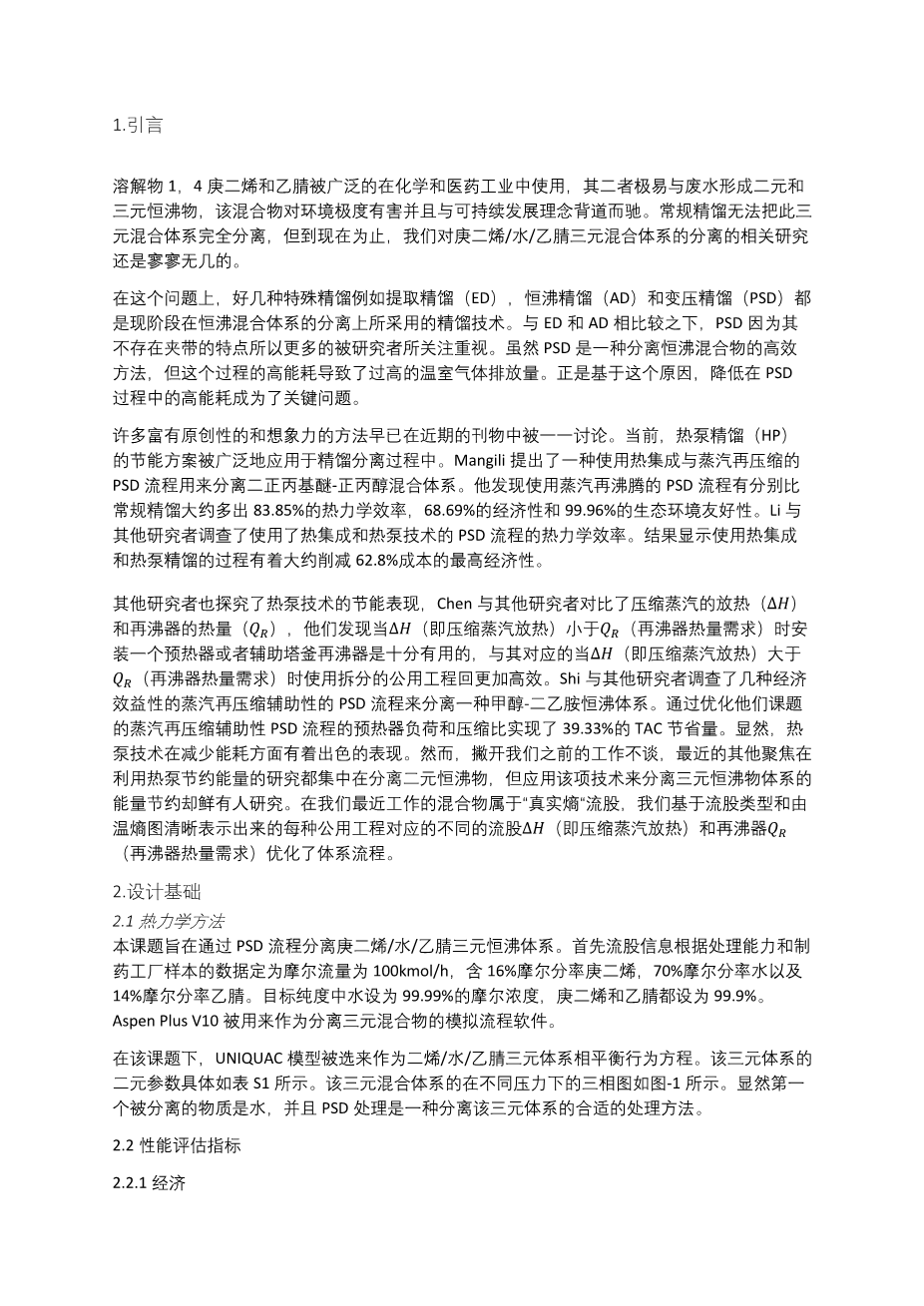 - 压力选择在变压精馏中的重要性外文翻译资料