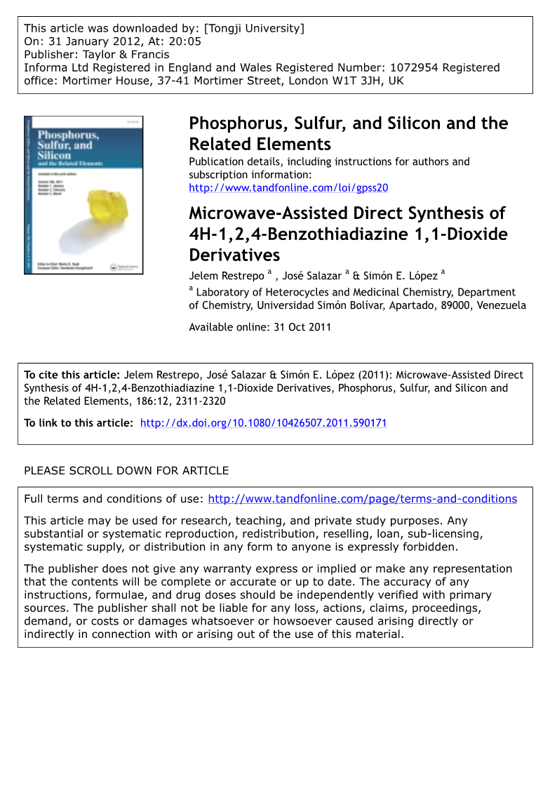 - 微波辅助下直接合成1,1-二氧代-4H-1,2,4-苯并噻二嗪类衍生物外文翻译资料