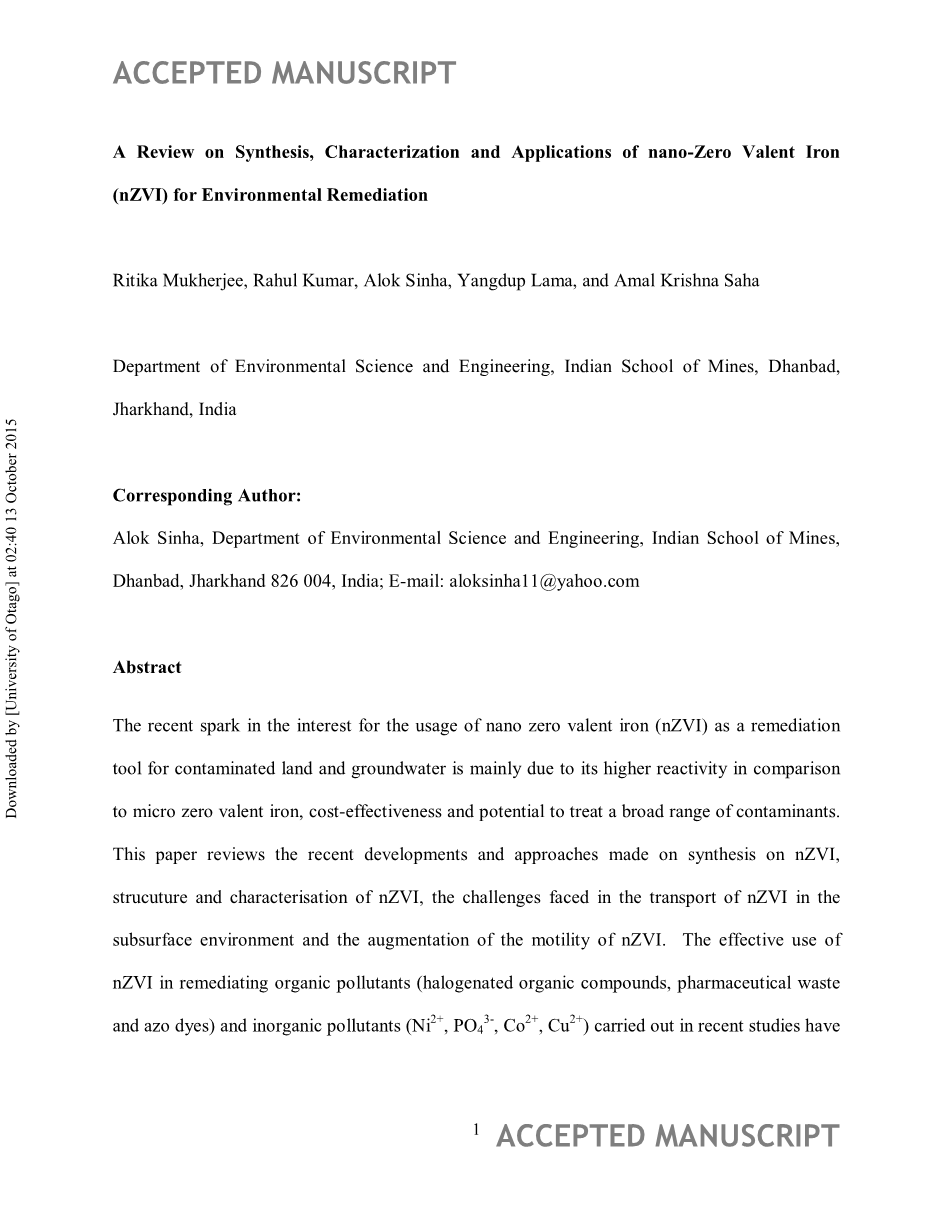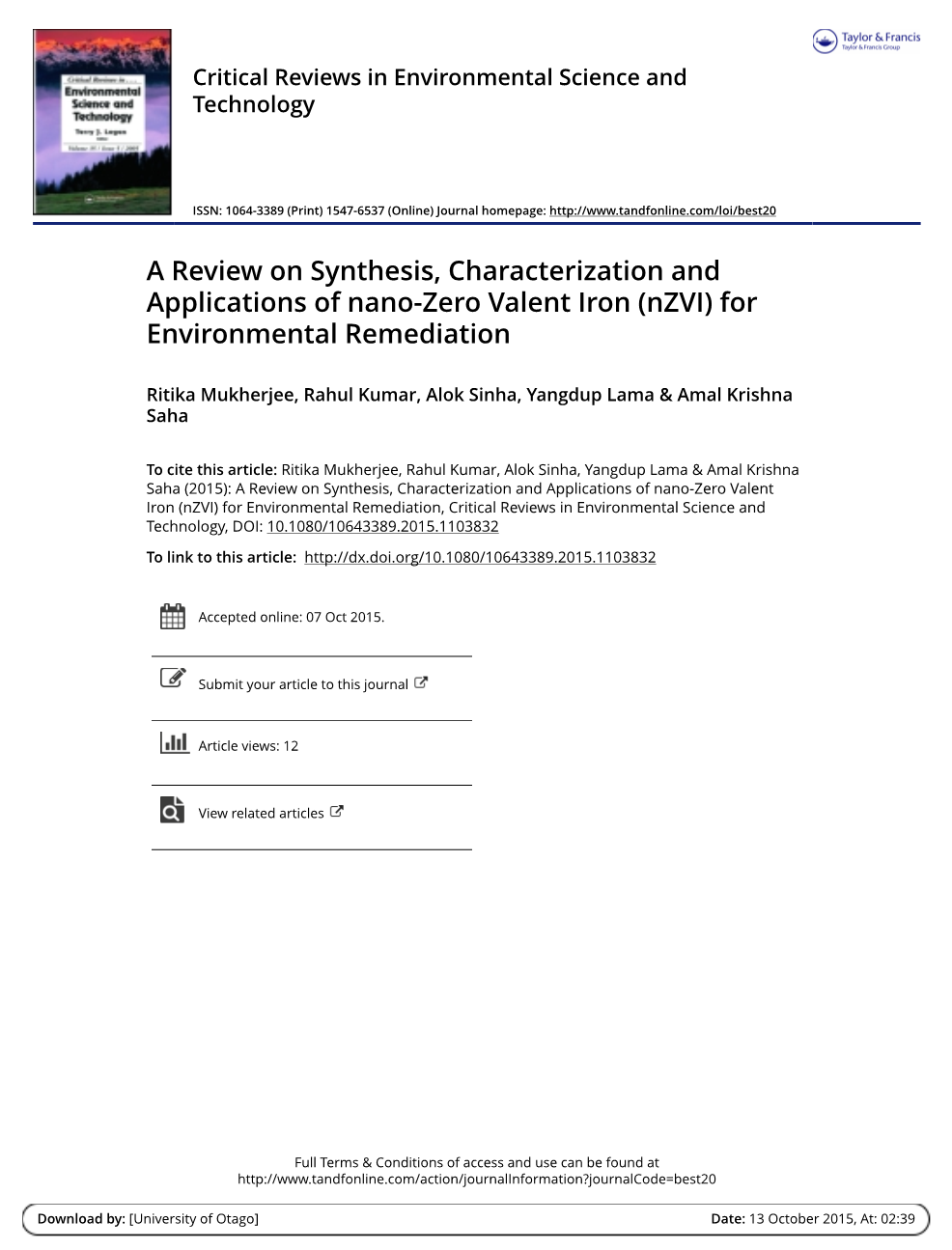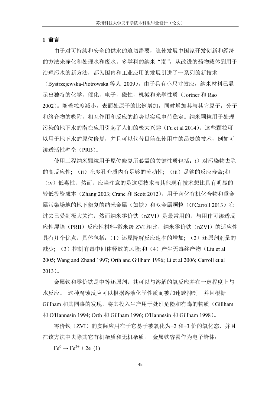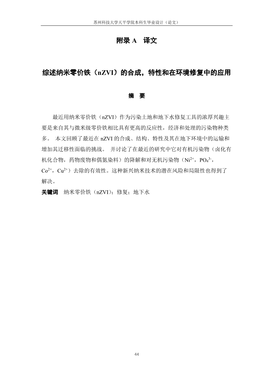 - 综述纳米零价铁(nZVI)的合成,特性和在环境修复中的应用外文翻译资料
