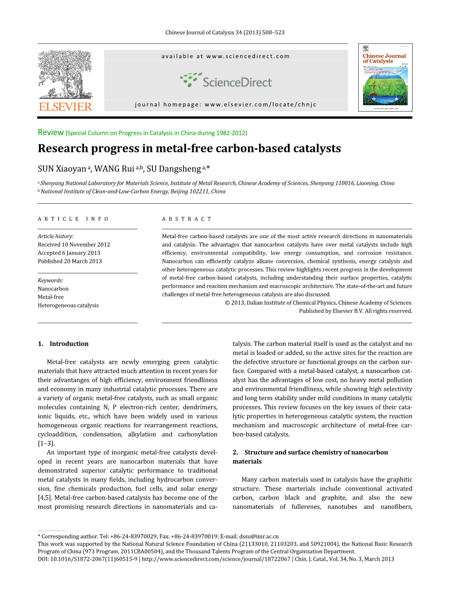 关键词:碳催化剂;反应机理;催化性能;研究进展