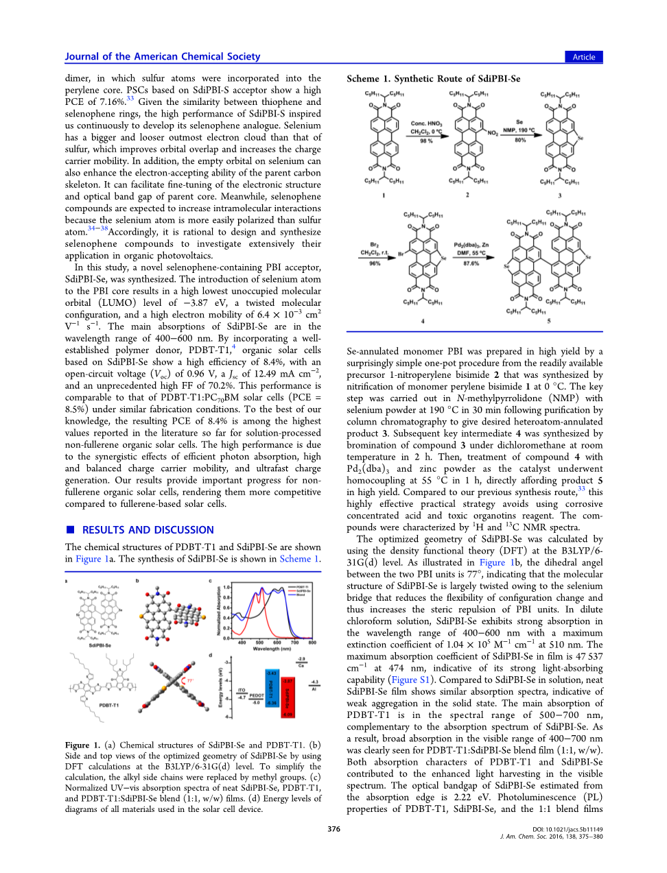 PDBT-T1和SdiPBI-Se的化学结构如图1a所示。 方案1中显示了SdiPBI-Se的合成。