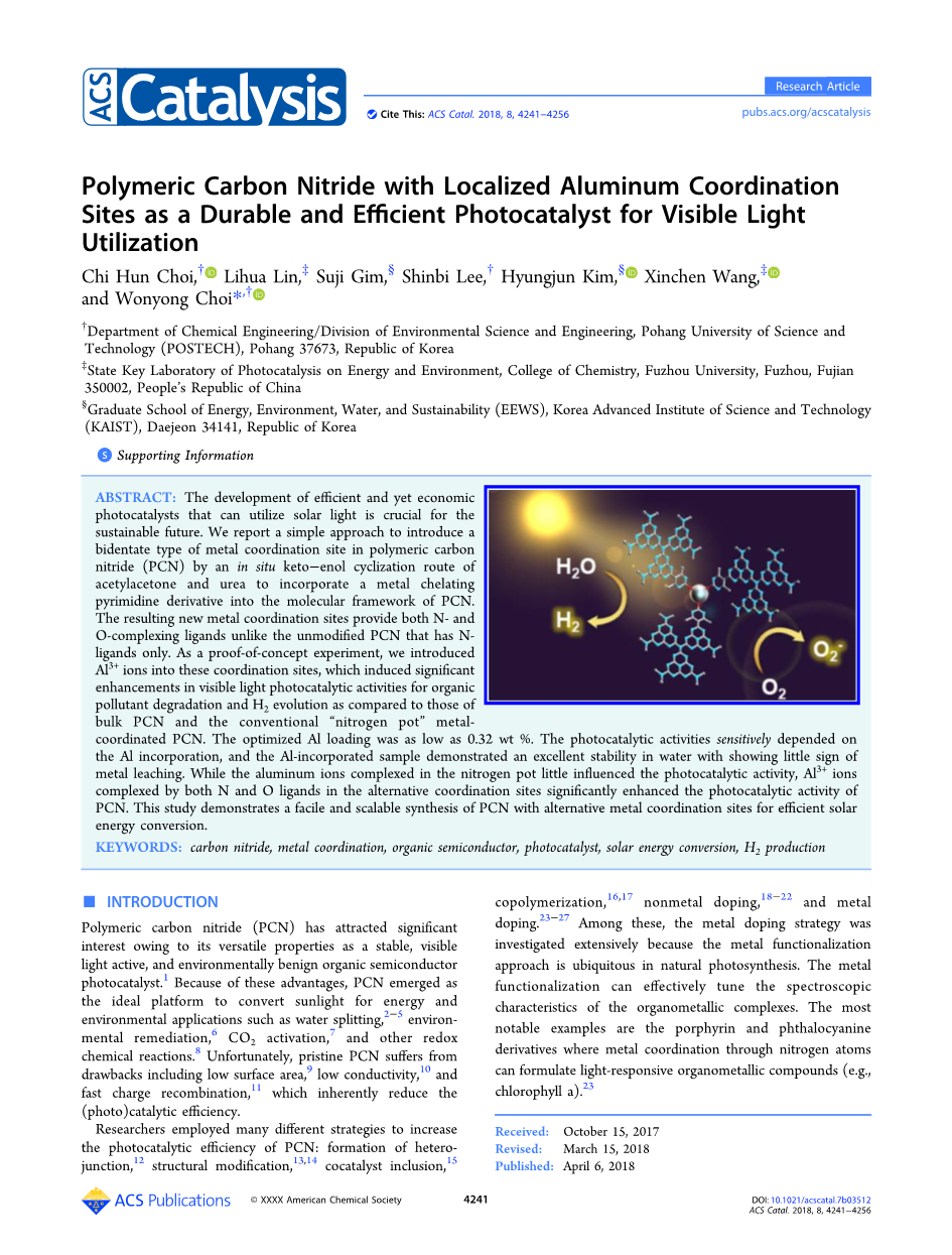 具有局部铝配位点的聚合碳氮化物作为可见光效率的耐久且高效的光催化剂
