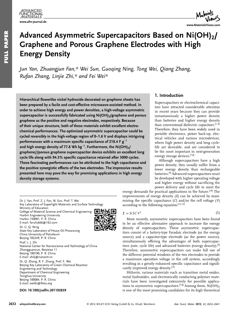 Jun Yan , Zhuangjun Fan , * Wei Sun , Guoqing Ning , Tong Wei , Qiang Zhang ,Rufan Zhang , Linjie Zhi , * and Fei Wei *