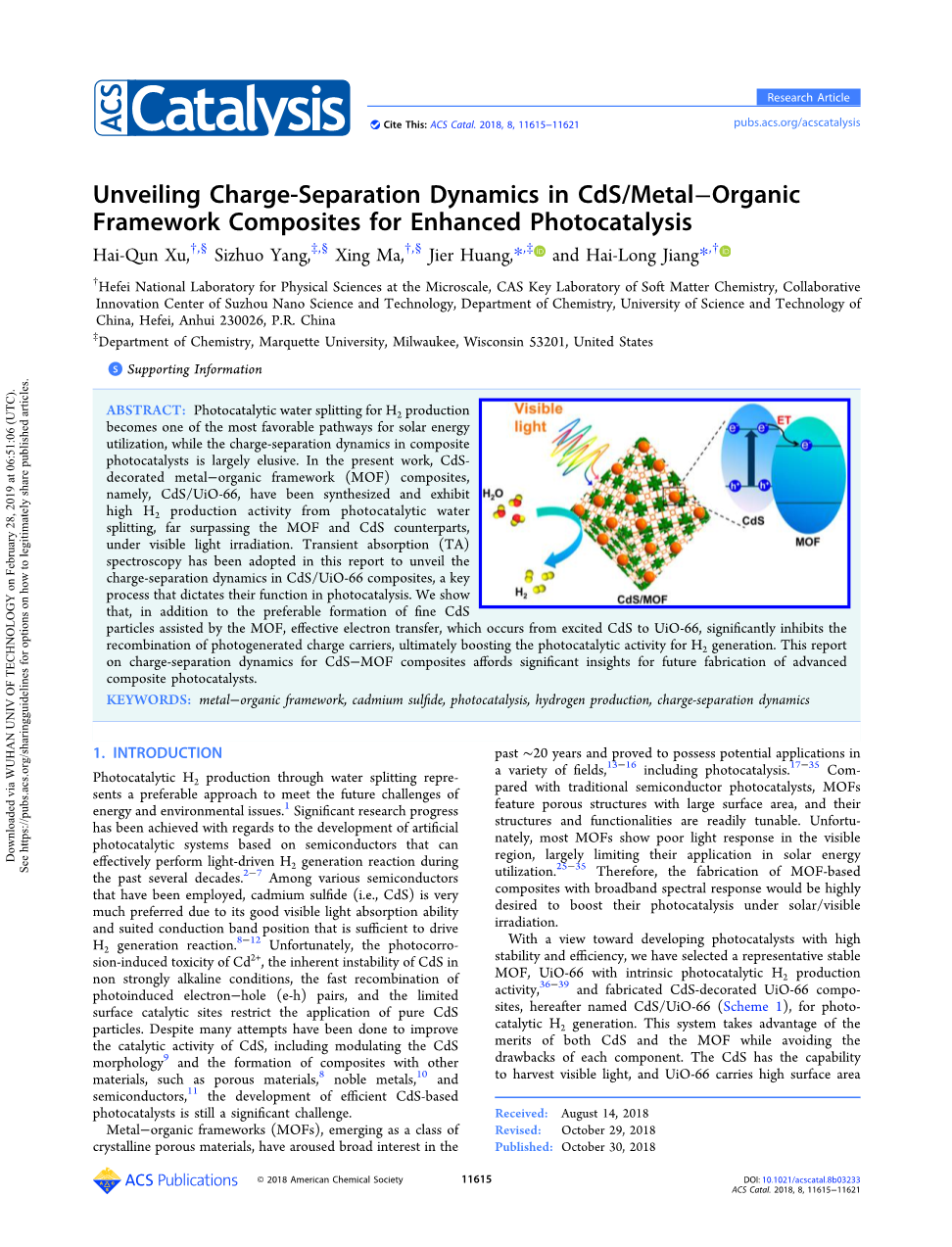 为了增强光催化作用在CdS/金属有机框架复合材料中揭示电荷分离动力学
