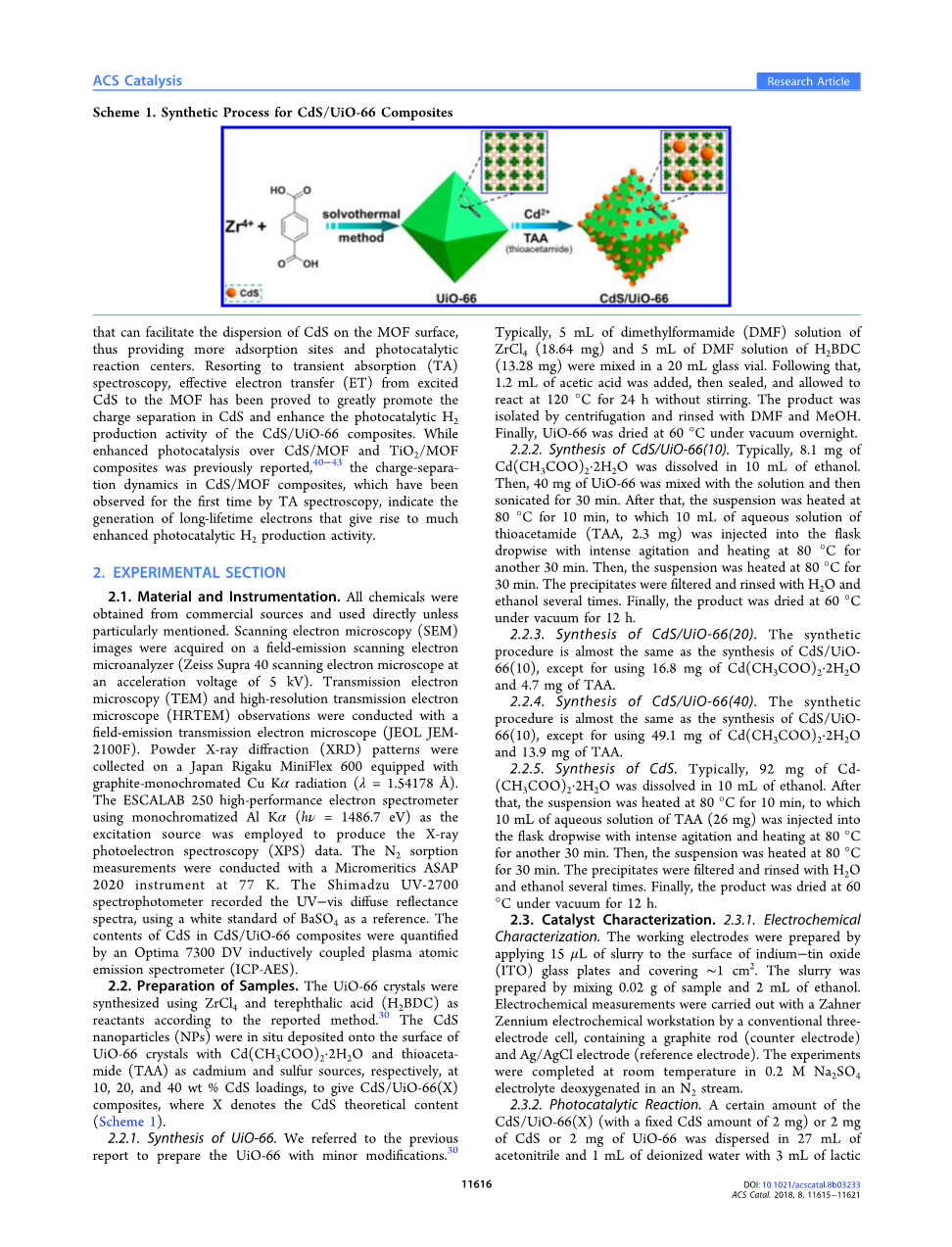 2.2.4. CdS / UiO-66的合成(40). 除了使用49.1mg Cd(CH 3 COO)2·2H2O和13.9mg TAA之外,合成方法与CdS / UiO-66(10)的合成几乎相同。