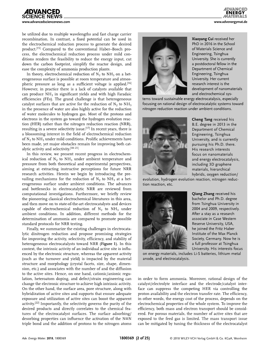 在环境条件下电催化合成氨的研究进展综述外文翻译资料