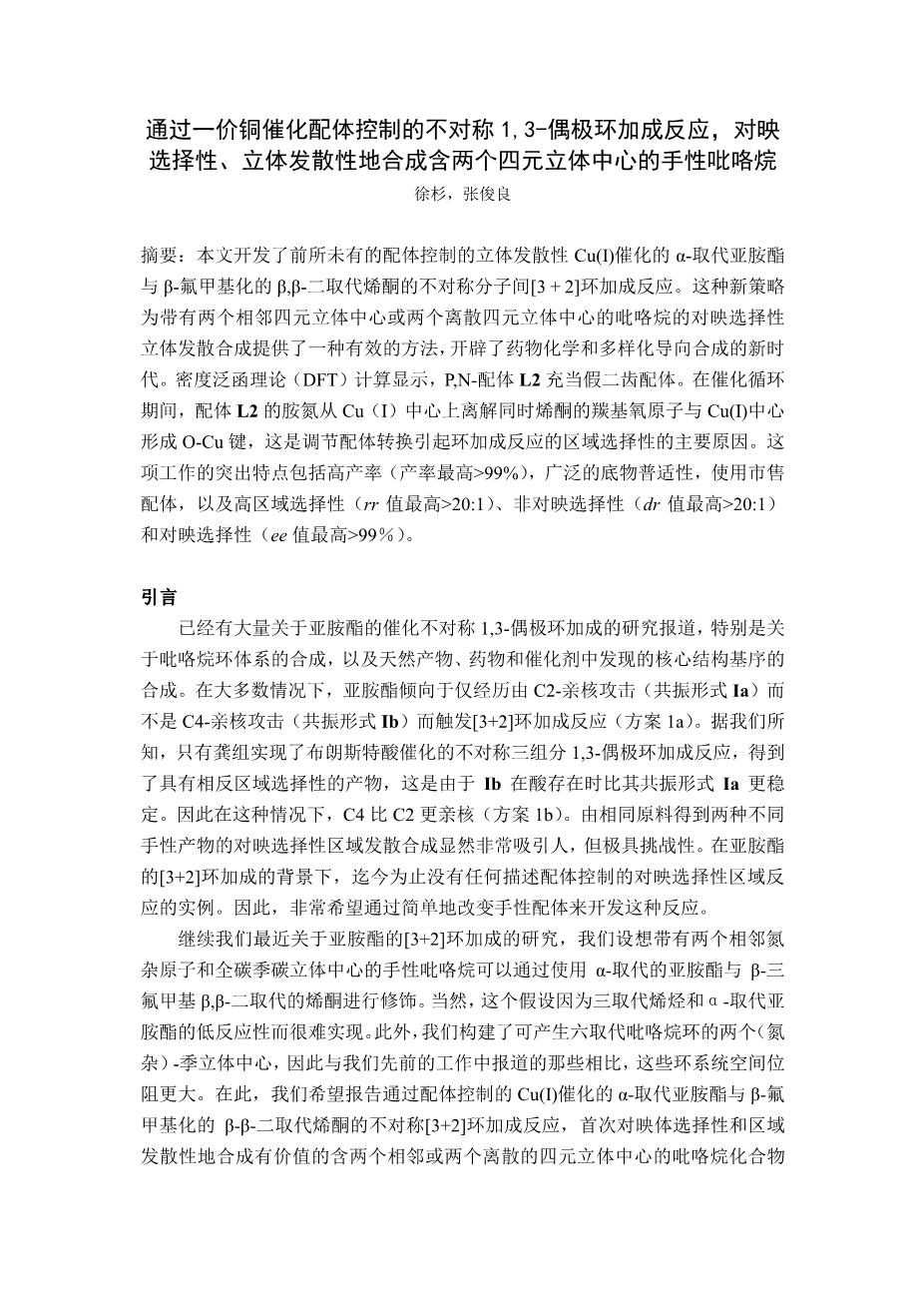 基于β-三氟甲基不饱和砜的1,3-偶极环加成反应的DFT计算研究外文翻译资料