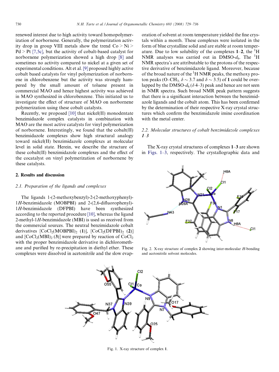 最近,我们提出了[10]镍(II)单齿苯并咪唑配合物催化剂与MAO的组合是降冰片烯乙烯基聚合反应最活跃的催化剂。有趣的是,我们发现钴(II)苯并咪唑配合物在固态分子水平上对镍(II)苯并咪唑配合物显示出高结构类比。在本文中,我们描述了这些钴(II)苯并咪唑络合物的结构和助催化剂对这些催化剂对降冰片烯的乙烯基聚合的影响。