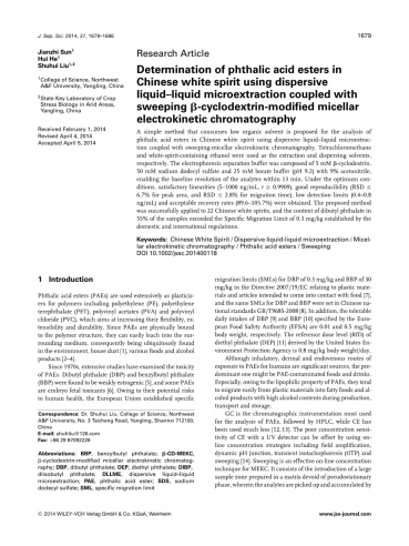 分散液液微萃取 - 扫描 -环糊精修饰胶束电动色谱法测定中国白酒中的邻苯二甲酸酯