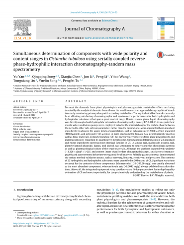 采用串联偶联反相 - 亲水作用色谱 - 串联质谱法同时测定肉苁蓉中极性和含量范围广的成分