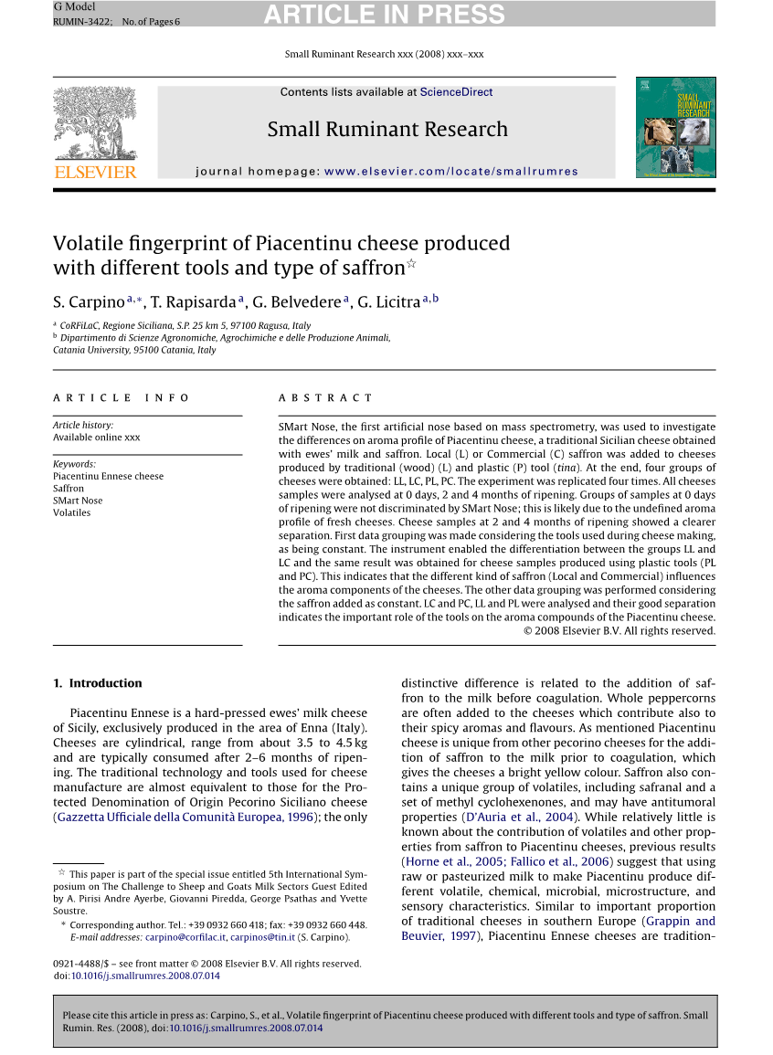2 S. Carpino et al. / Small Ruminant Research xxx (2008) xxx–xxx