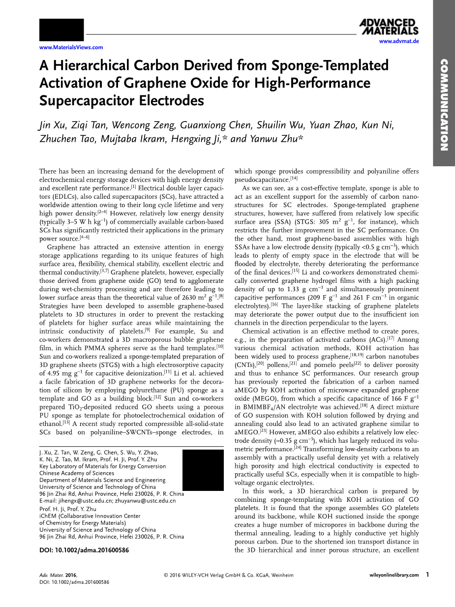 Jin Xu, Ziqi Tan, Wencong Zeng, Guanxiong Chen, Shuilin Wu, Yuan Zhao, Kun Ni,Zhuchen Tao, Mujtaba Ikram, Hengxing Ji,* and Yanwu Zhu*
