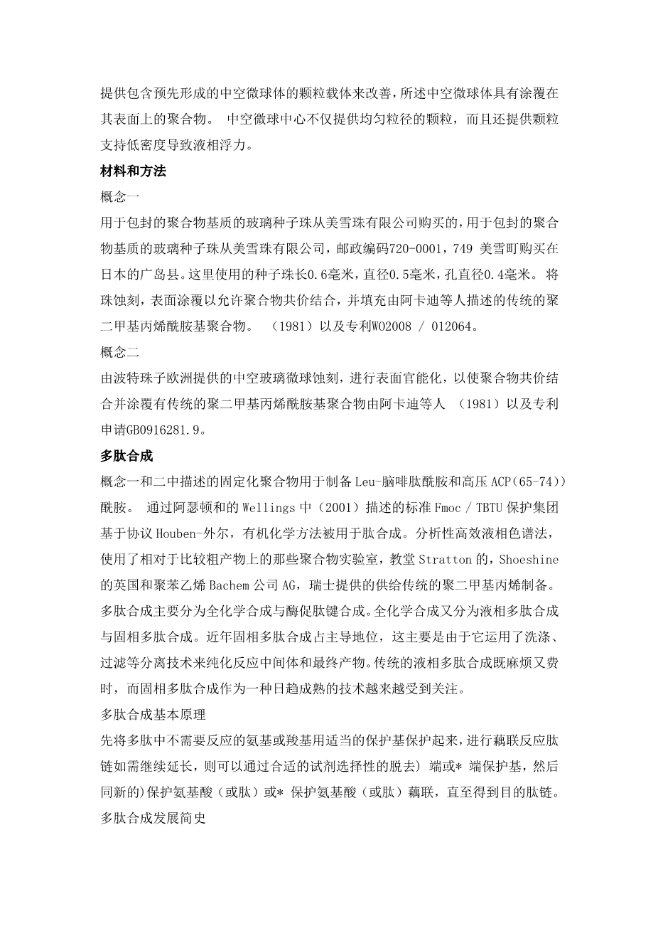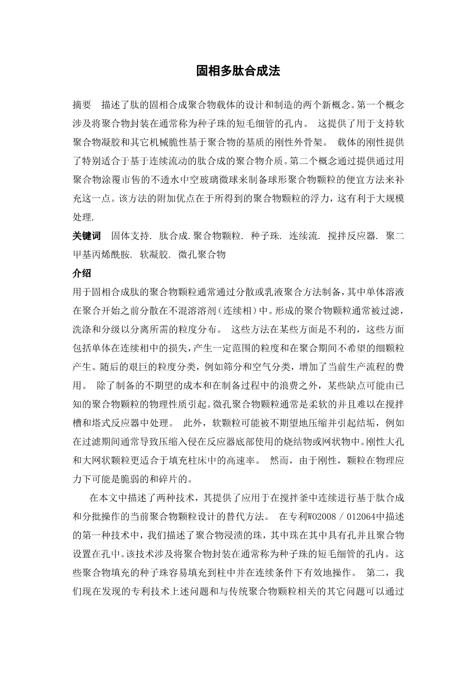 Keywords Solid supports. Peptide synthesis .Polymer particles . Seed beads. Continuous flow . Stirred reactor . Polydimethylacrylamide . Soft gels . Microporous polymers
