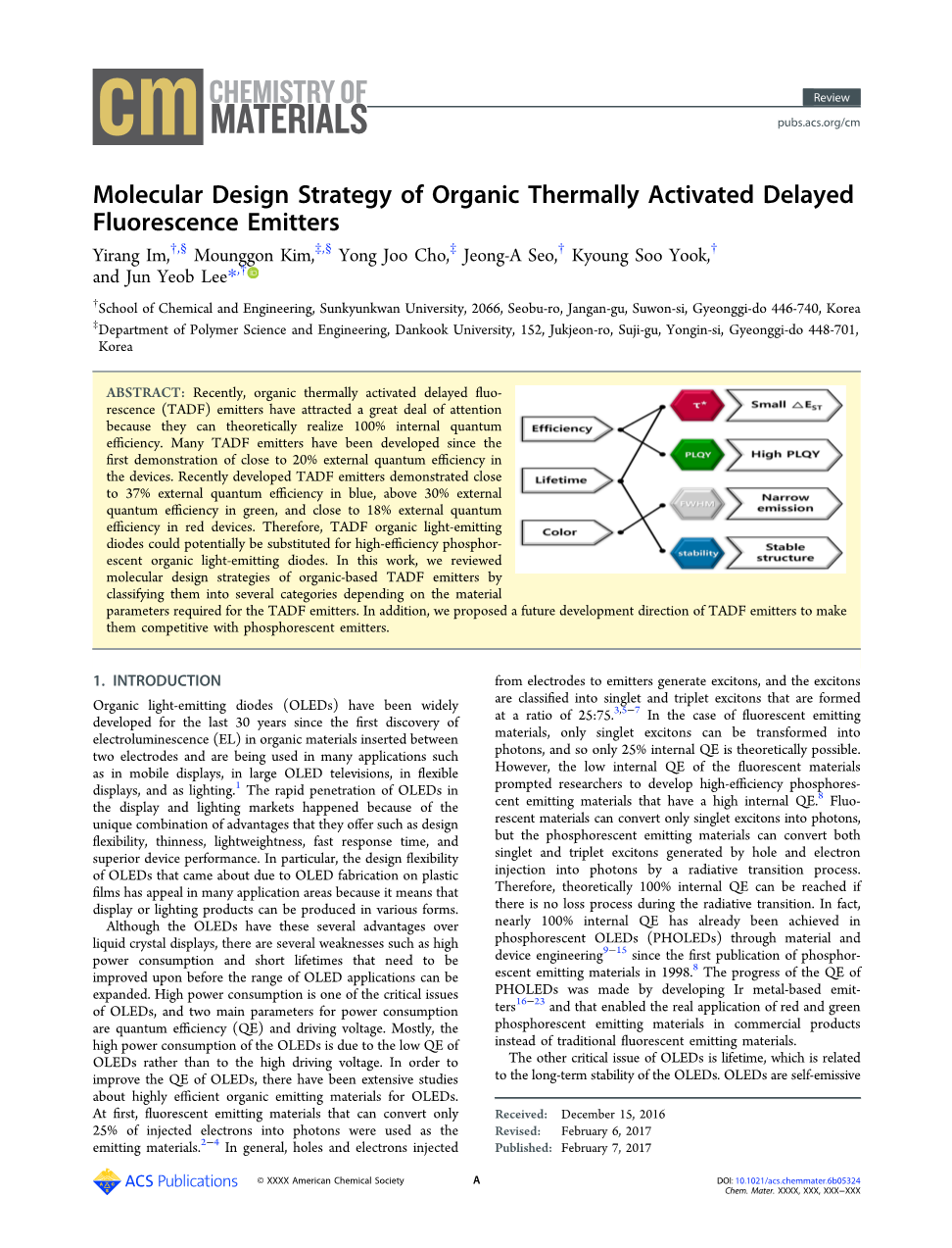 在 TADF设备中,两个ϕPF和ϕDF /ϕISC最大化为高EQE,特别是,ϕDF /ϕISC EQE TADF设备因为75%的三重态EL过程产生的三线态激子。从这个角度看,PLQYDelta;EST密切相关