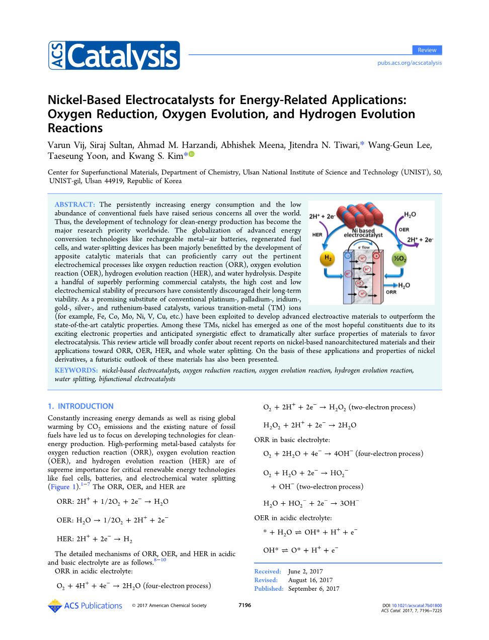 持续增长的能源需要以及由于CO2排放和化石燃料的现有性质而引起的不断加剧的全球变暖导致我们将重点放在开发清洁能源生产技术上。用于氧还原反应(ORR),析氧反应(OER)以及析氢反应(HER)的高性能金属基催化剂对于像燃料电池、电池和电化学水分解这些循环可再生的能源技术具有无可替代的重要性。(Figure 1)。1-7OOR,OER和HER是: