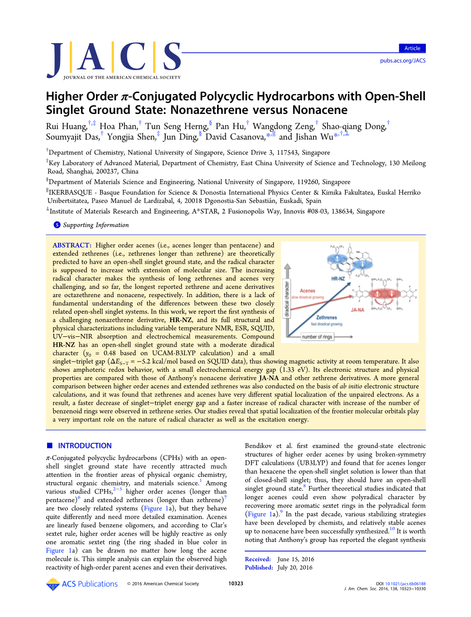 图1.(a)高级并苯和扩展zethrene的共振结构; (b)安东尼非并苯衍生物(JA-NA)和我们新的非氮杂苯乙烯衍生物(HR-NZ)的化学结构。