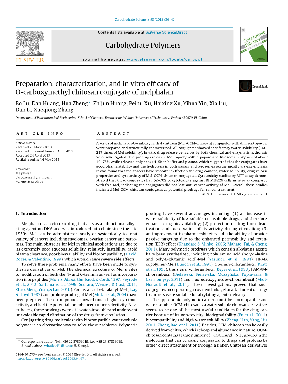 美法仑的0-羧甲基壳聚糖聚合物的制备,表征和体外效用外文翻译资料