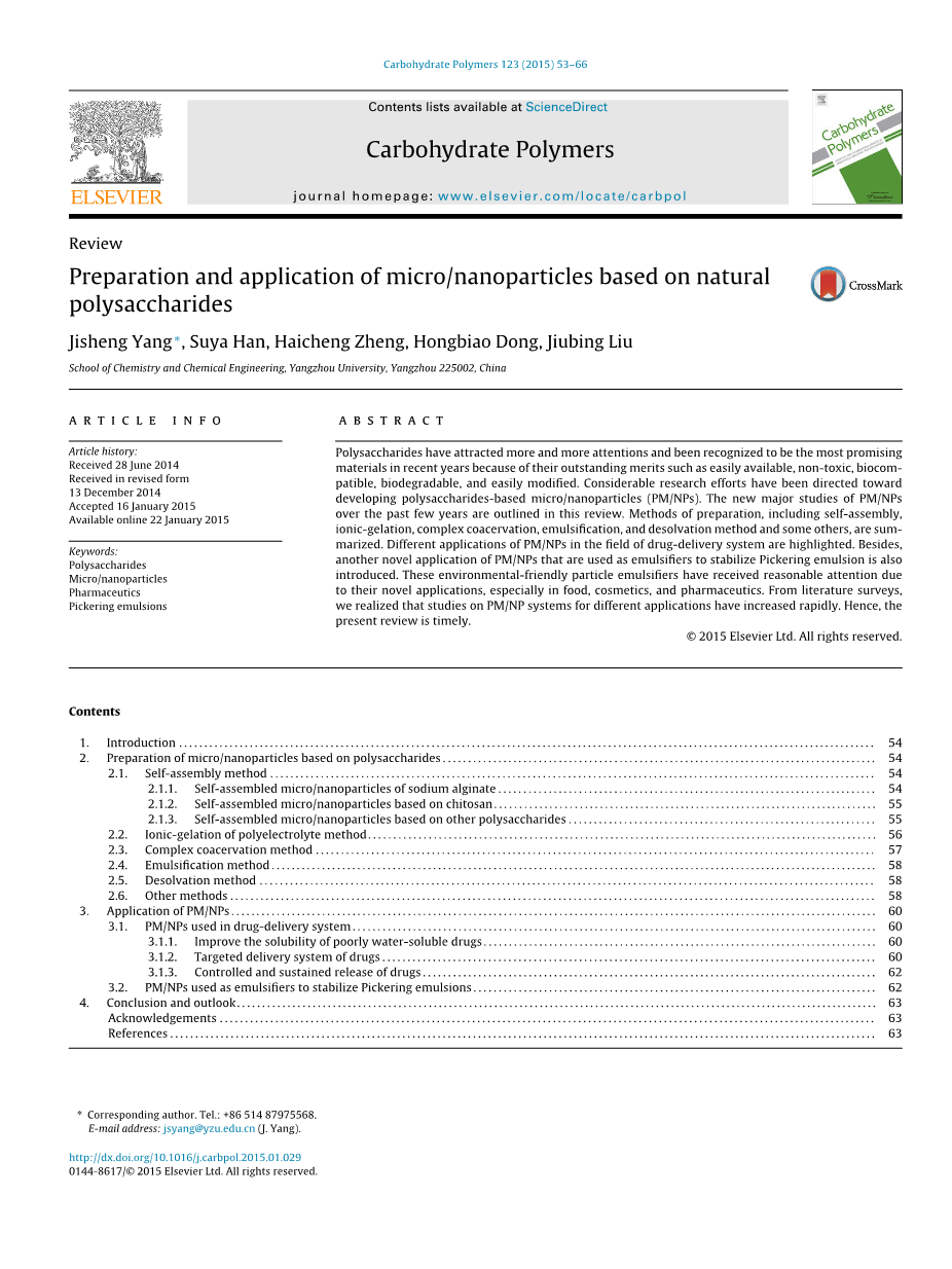 2.1.3.基于其他多糖的自组装微米/纳米颗粒