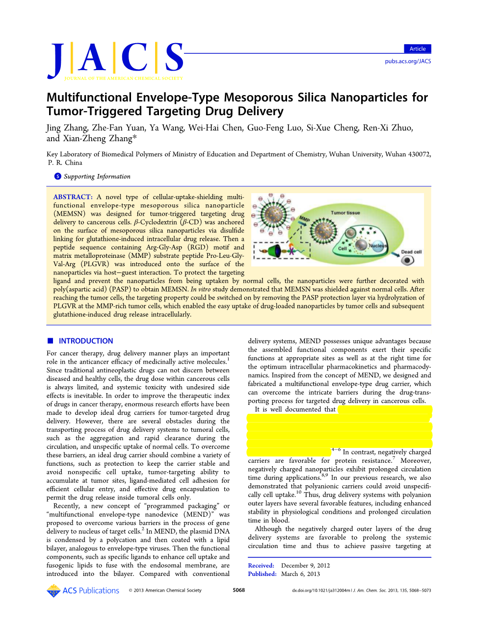 Jing Zhang, Zhe-Fan Yuan, Ya Wang, Wei-Hai Chen, Guo-Feng Luo, Si-Xue Cheng, Ren-Xi Zhuo,and Xian-Zheng Zhang*