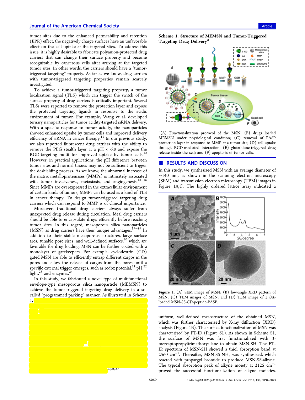 方案1. MEMSN的结构和肿瘤触发的靶向药物递送