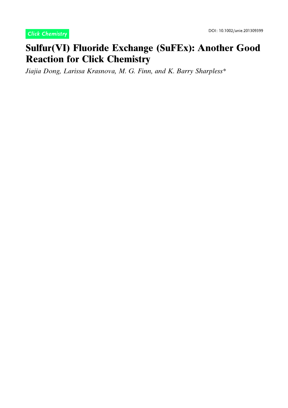 氟、硫(VI)交换(SuFEx):点击化学的另一个良好反应外文翻译资料