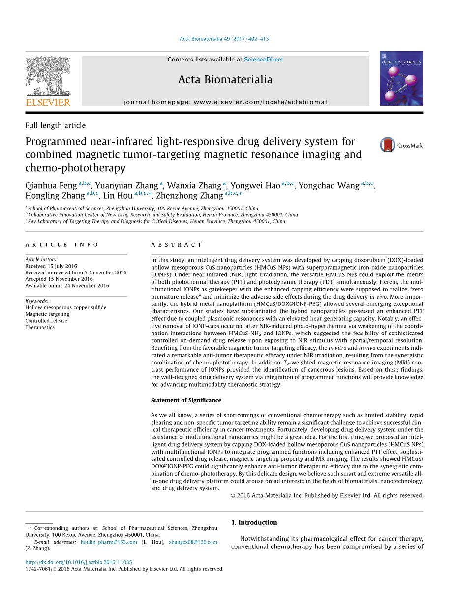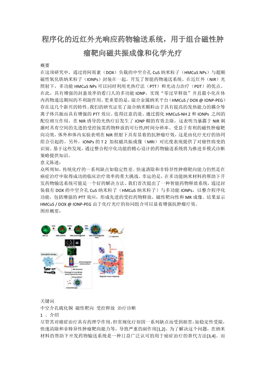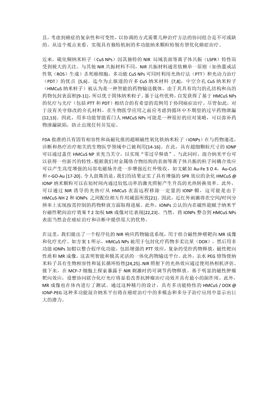 - 用环境敏感药物释放的三氧化二砷靶向介孔二氧 化硅纳米颗粒有效治疗三阴性乳腺癌外文翻译资料