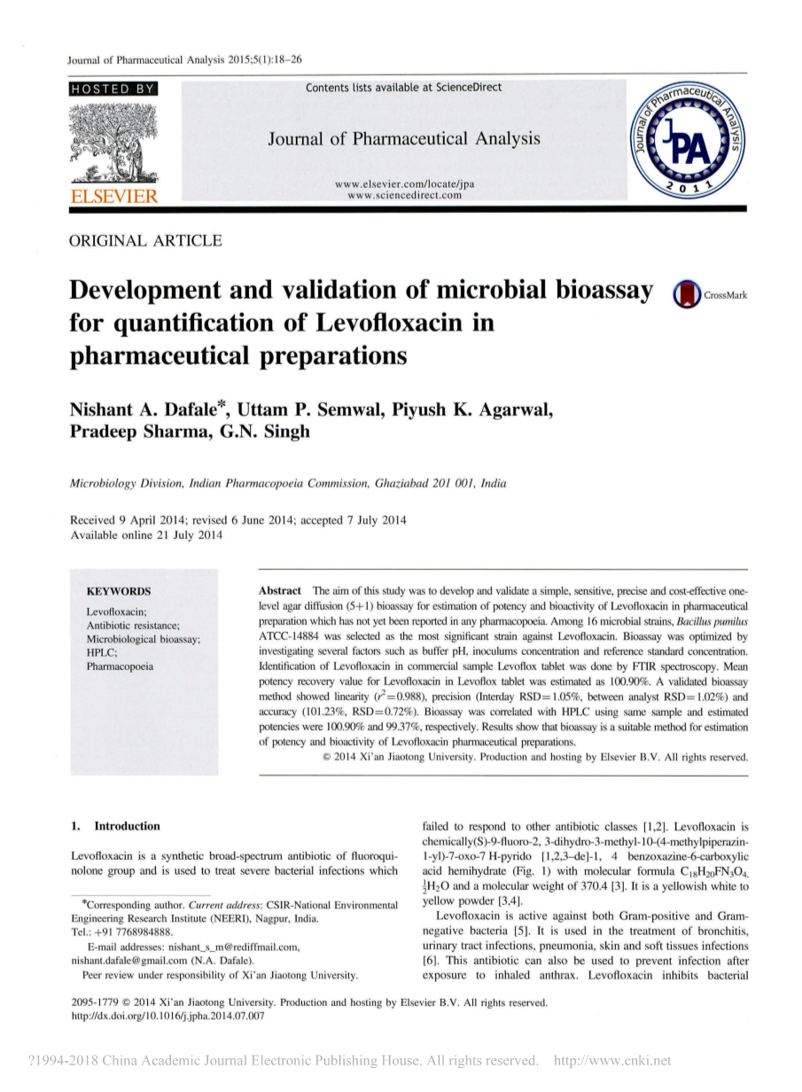 用于定量药物制剂中左氧氟沙星的微生物生物测定的开发和验证外文翻译资料